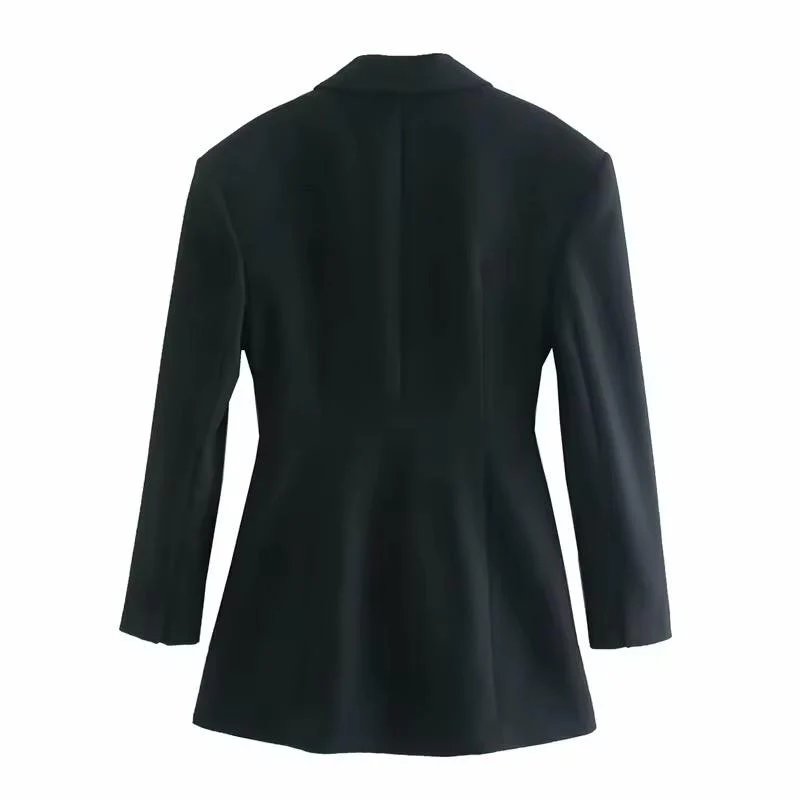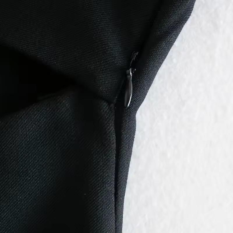 Abito da donna elegante e moderno perfetto per occasioni formali o serate eleganti. L’abito รจ di colore nero e presenta un design a un pezzo . La parte superiore dellโabito ha un taglio a giacca corta mentre la parte inferiore una gonna aderente. Il dettaglio interessante รจ il taglio sotto il busto che lascia intravedere una striscia di pelle, creando un effetto di separazione tra la parte superiore e inferiore dell’abito. Questo abito รจ la scelta ideale per chi desidera un look chic e sofisticato, garantendo uno stile impeccabile e senza tempo.