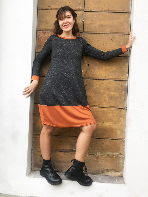 Abito in tessuto jacquard colore grigio, COTONE 65% POLIESTERE 32% ELASTAN 3%, la falda di colore arancio maglia di VISCOSA 100% con manica, lunga fasciato sul fianco e una silhouette a palloncino nella parte inferiore dando al capo un tocco di originalitร . Il tessuto elasticizzato lo rende comodo e ideale per la stagione autunnale /invernale. Il tessuto in jacquard conferisce morbidezza e vestibilitร  al capo, disponibile in diverse taglie e colori. Un capo da indossare in ogni occasione, dalla passeggiata in cittร  al cocktail party o un aperitivo con amici. Guida alla taglie La taglia S veste: Seno da 88…