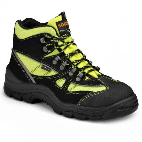 Tomaia: in pellame scamosciato colore nero, idrorepellente e traspirante Inserti laterali e soffietto: in Cordura colore giallo, rosso o nero, alta resistenza allo strappo, idrorepellente e traspirante Inserti rifrangenti: inserti alta visibilitร posizionati lateralmente e nella zona del tallone. Fodera: in tessuto KLIMATEX, membrana impermeabile e traspirante, che garantisce resistenza all’acqua ed al vento, pur conservando le caratteristiche di traspirazione previste dalla normativa, aiuta a mantenere il piede asciutto dall’umiditร e ripara dal freddo, cuciture di unione termosaldate. Sottopiede/Inserto antiperforazione: formato da un intreccio di fibre ad alta tenacitร , con alto potere di assorbimento e de assorbimento del sudore, resistente…