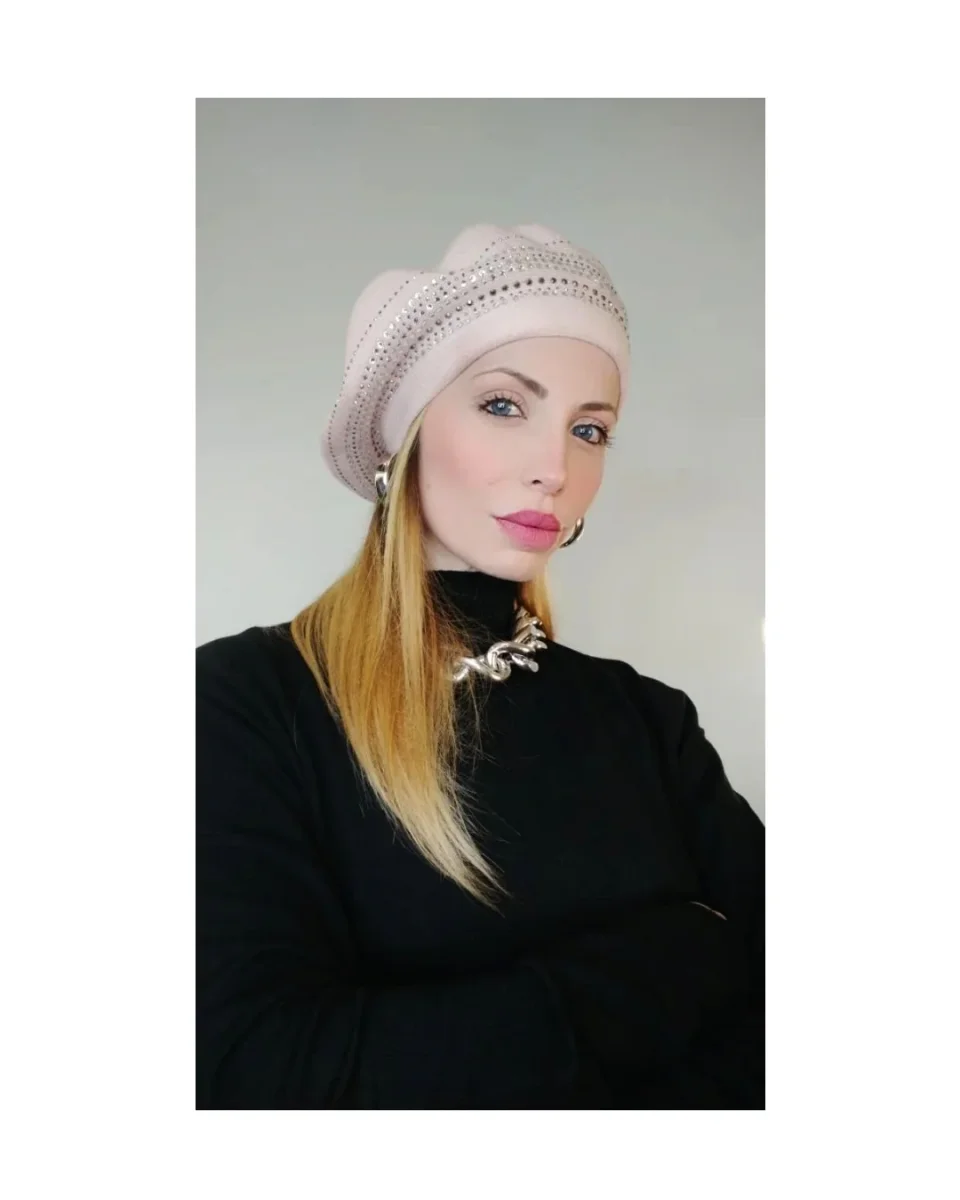 Il cappello è un’accessorio che rende il look unico e trendy, basco tinta unita cipria morbido e caldo in misto viscosa con la luminosità e la particolarità delle perline applicate!