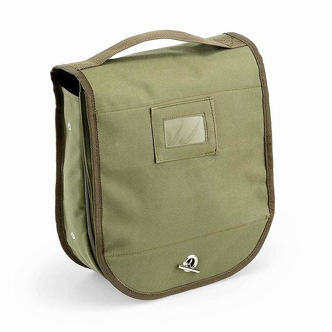 Tactical beauty case grande, realizzato in tessuto resistente e impermeabile e bordato. Si ripiega su se stesso con chiusura a gancio metallico e maniglia per trasporto.