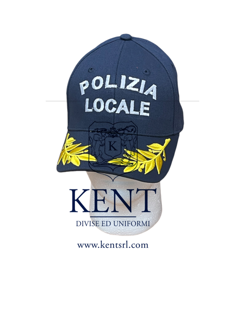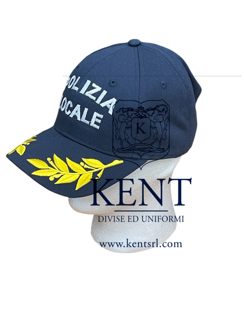 Berretto in 100% cotone twill, con frange oro sulla visiera e scritta ricamata Polizia Locale.