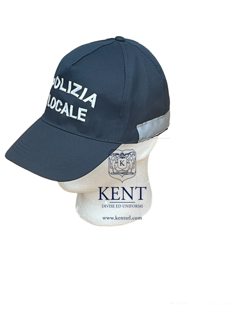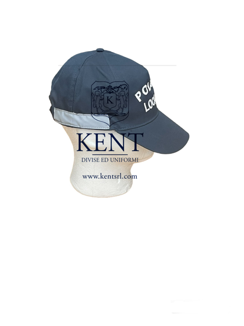 Berretto baseball con ricamo anteriore Polizia Locale. Bande rifrangenti laterali. Misura unica: regolabile posteriormente con velcro.