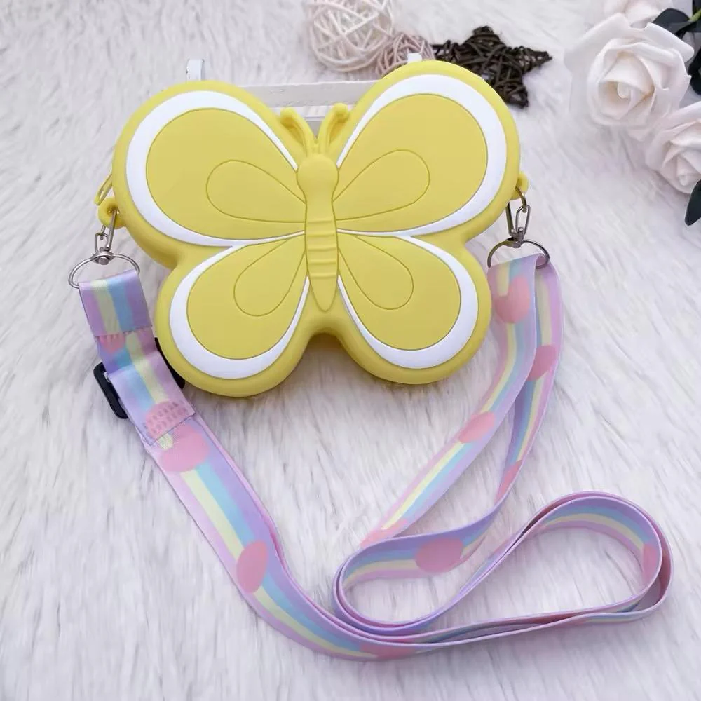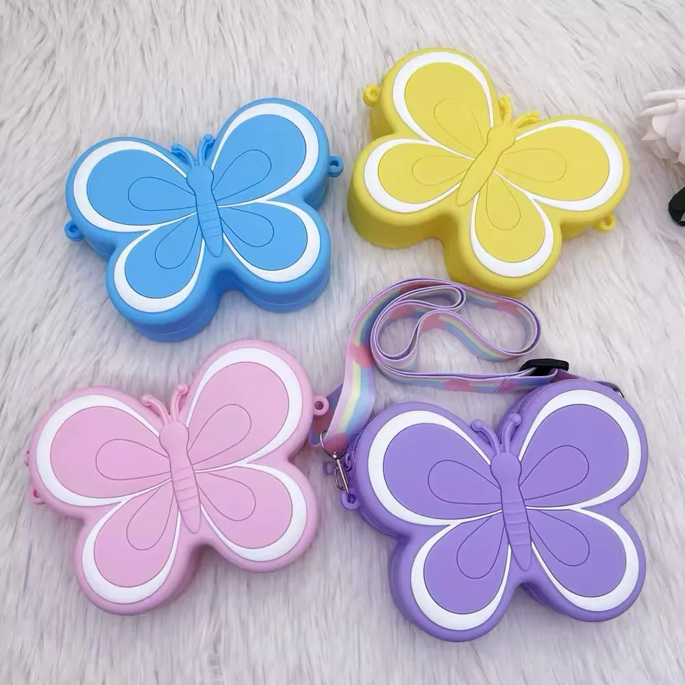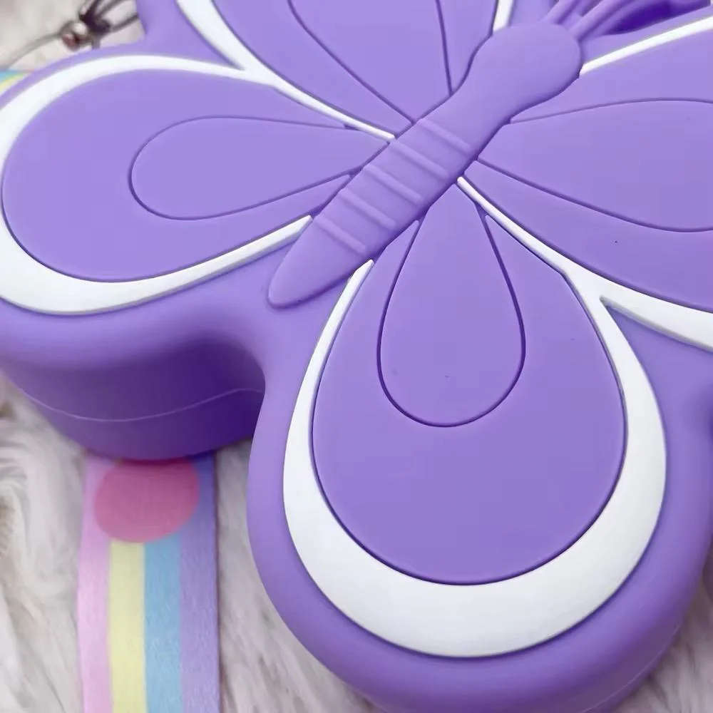 Le nostre borsette da bambina a forma di farfalla sono l’accessorio perfetto per aggiungere un tocco di magia ai look delle piรน piccole. Disponibili in quattro vivaci tonalitร โ blu, giallo, rosa e viola โ sono caratterizzate da dettagli delle ali a colori contrastanti che catturano l’attenzione. Ogni borsetta รจ dotata di una pratica tracolla, rendendola comoda da indossare durante feste, giochi o per custodire piccoli tesori quotidiani. La variante viola si distingue per la sua tracolla multicolore, mentre le altre offrono design compatti e accattivanti per soddisfare ogni gusto