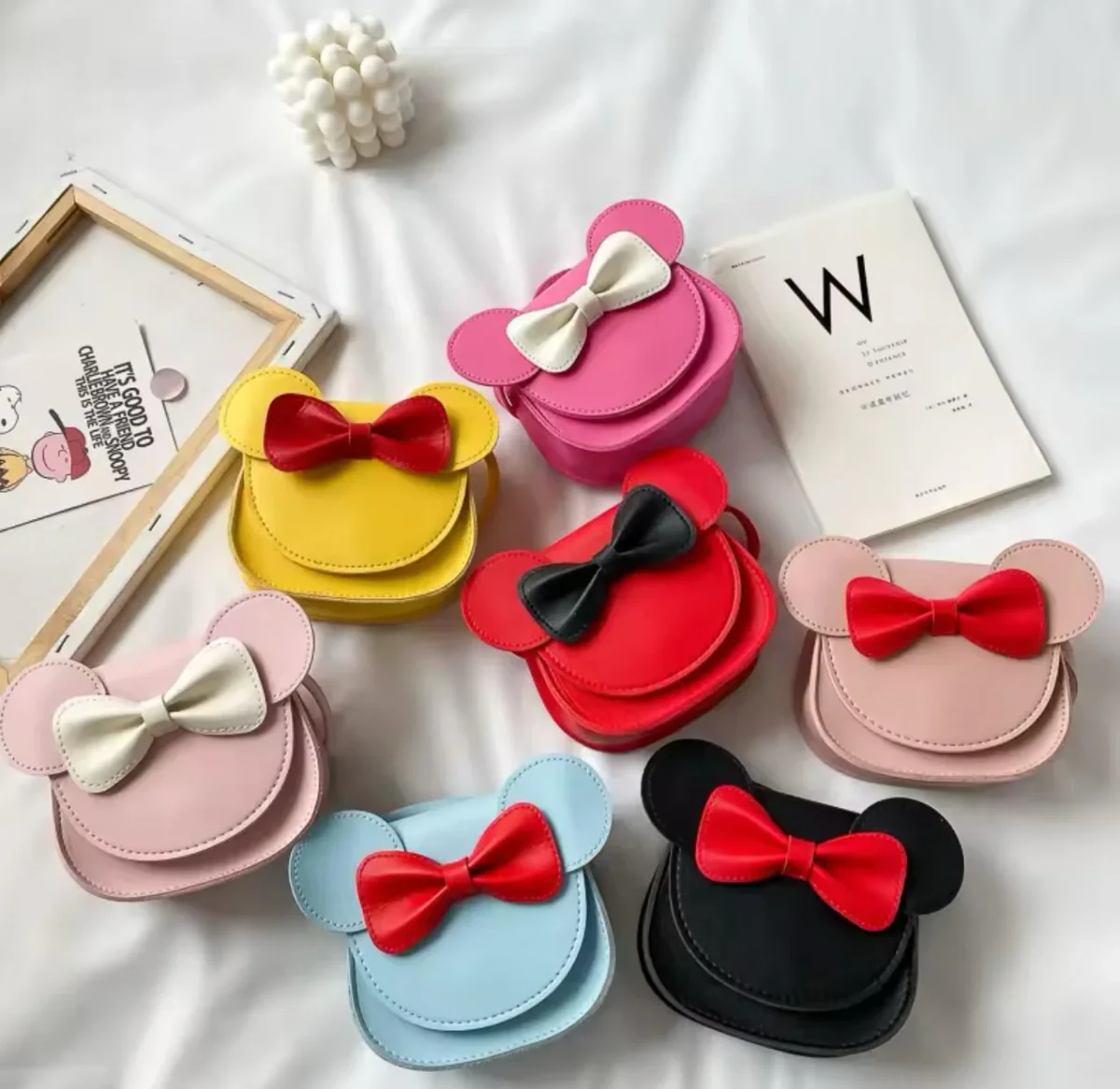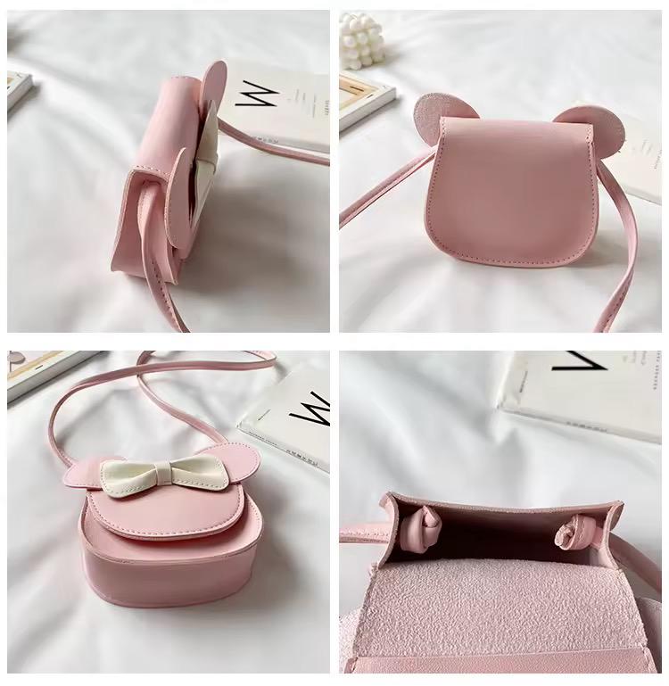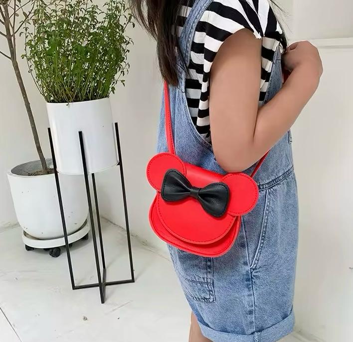 Un accessorio irresistibile per le piccole fashioniste! Questa dolce borsetta รจ disponibile in una varietร di colori, con un design che richiama una testa di topo stilizzata. Caratterizzata da due grandi orecchie tonde e un fiocchetto al centro, unisce praticitร e stile. Realizzata con materiali di qualitร , presenta una tracolla regolabile per un comfort ottimale.