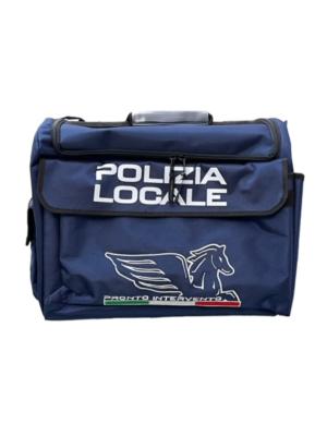 Borsone in cordura con stampa Polizia Locale – Pronto Intervento. Con doppia comparto interno e tracolla.