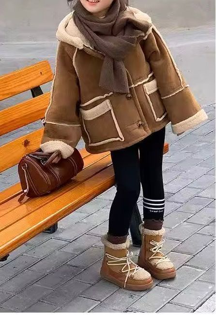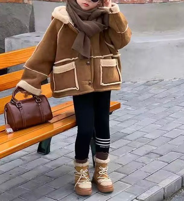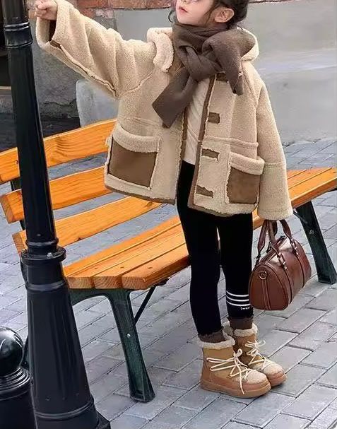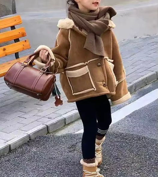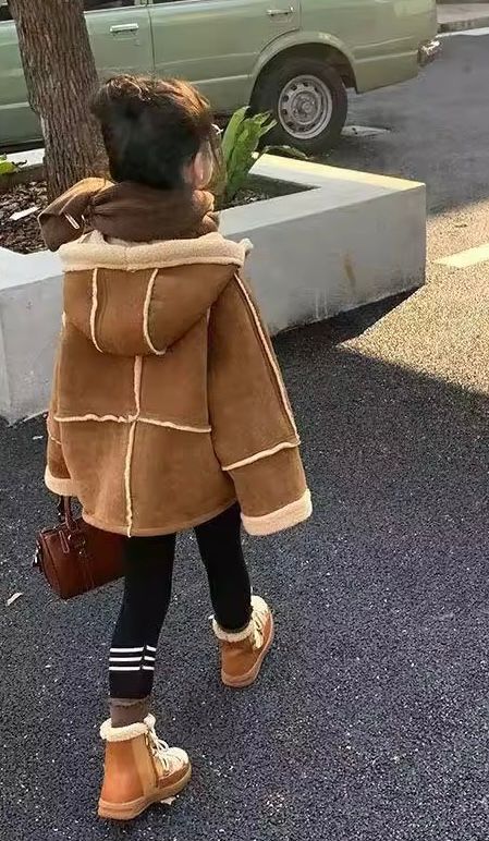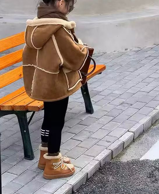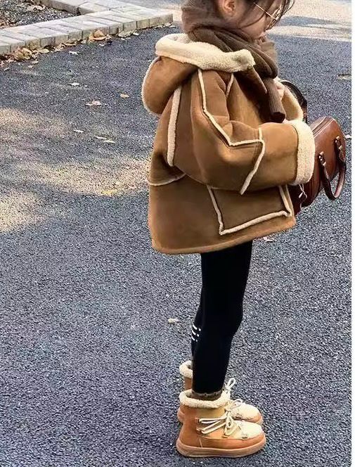 Un cappotto invernale elegante e super caldo, perfetto per le giornate piรน fredde! Realizzato in morbida ecopelle scamosciata allโesterno e soffice pelliccia sintetica allโinterno, questo cappotto double-face per bambina unisce comfort e stile.