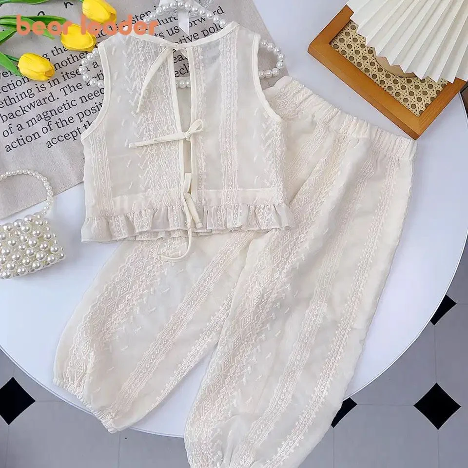 Completo Bambina Due Pezzi in Pizzo Elegante