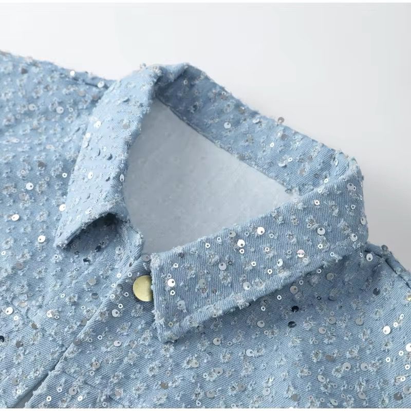 Esalta il tuo guardaroba con questo sofisticato completo due pezzi in Denim effetto brillante. La giacca corta presenta un taglio moderno con bottoni frontali e dettagli scintillanti che riflettono la luce per un look glamour. I pantaloncini coordinati completano l’outfit, perfetto per un evento speciale o una serata in cittร . Abbinalo a un paio di stivali o scarpe col tacco per un look irresistibile.