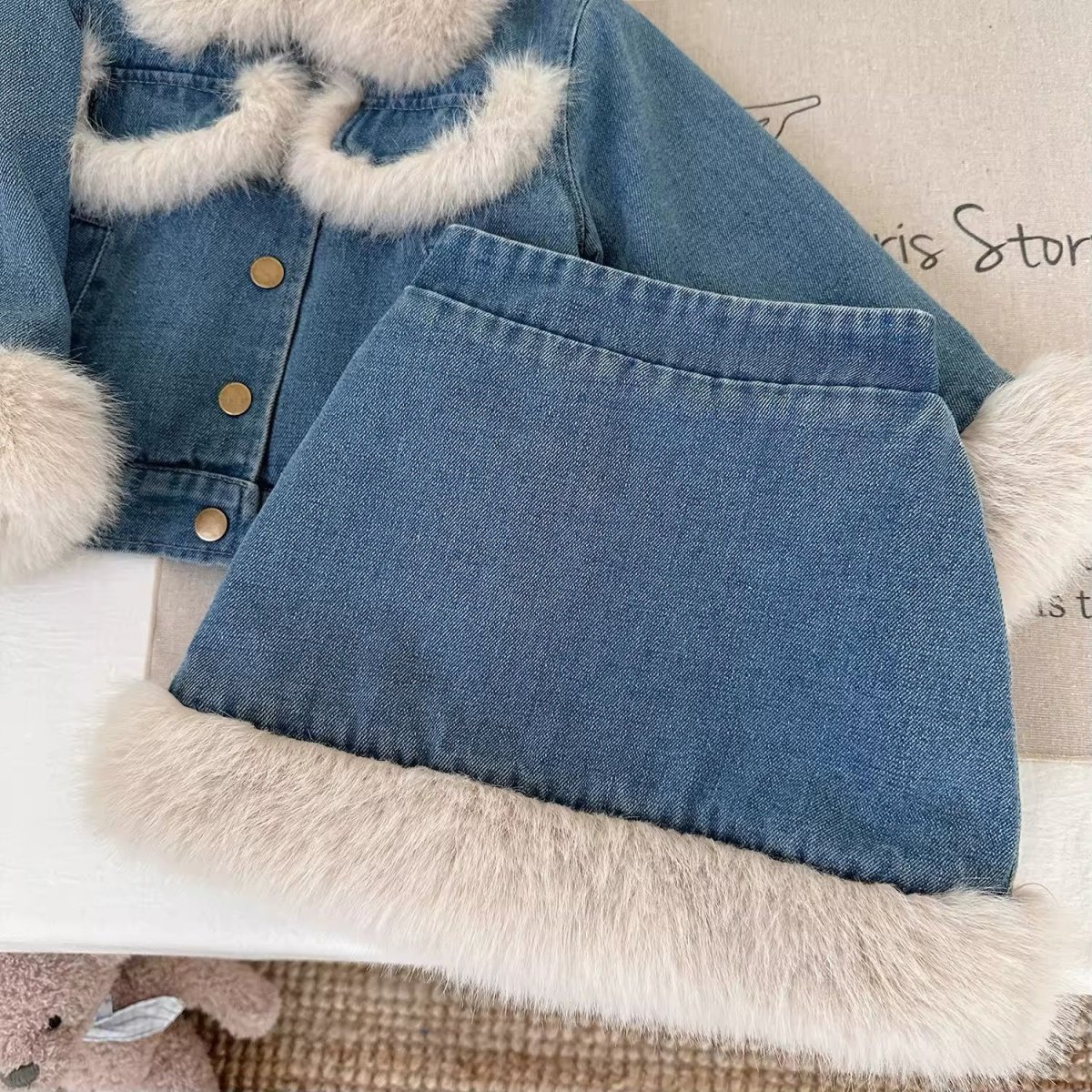 Scopri il nostro coordinato Amazing per bambine, perfetto per tenere al caldo durante i mesi piรน freddi. Questo set include una giacca in denim con pelliccia interna, chiusura con bottoni e ecopelliccia intorno al colletto e polsini e una gonna imbottita con fondo in ecopelliccia. Questo coordinato รจ perfetto per ogni occasione, dalle giornate di scuola alle uscite in famiglia. La combinazione di stile e comfort renderร la tua bambina irresistibile!