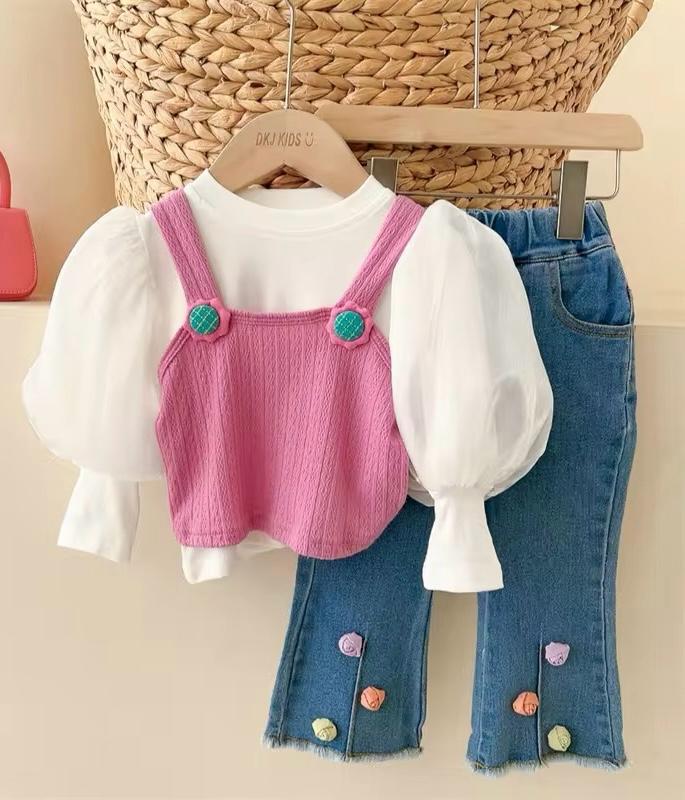 Questo coordinato tre pezzi per bambina รจ l’ideale per le piccole fashioniste che desiderano un look alla moda e comodo. Il set comprende un top rosa delicato, caratterizzato da una scollatura elegante e dettagli con bottoni che aggiungono un tocco di stile, una maglietta bianca, caratterizzata da eleganti maniche a sbuffo che aggiungono un tocco di stile e originalitร a qualsiasi outfit, abbinate a un paio di jeans dal taglio moderno, perfetti per ogni occasione. Realizzato con materiali di alta qualitร , il coordinato garantisce comfort e libertร di movimento, rendendolo perfetto per le giornate di gioco o per eventi speciali. La combinazione di colori e il design accattivante fanno di questo set un must-have nel guardaroba di ogni bambina.