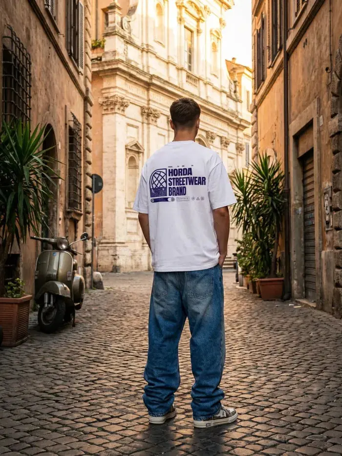 Realizzata in 100% cotone bianco, Essential cattura l’anima grezza dello streetwear urbano. Non รจ solo un capo, รจ il tessuto della metropoli che indossi. Ogni fibra racconta storie di marciapiedi percorsi, di notti illuminate dai neon, di cultura che nasce dall’asfalto.