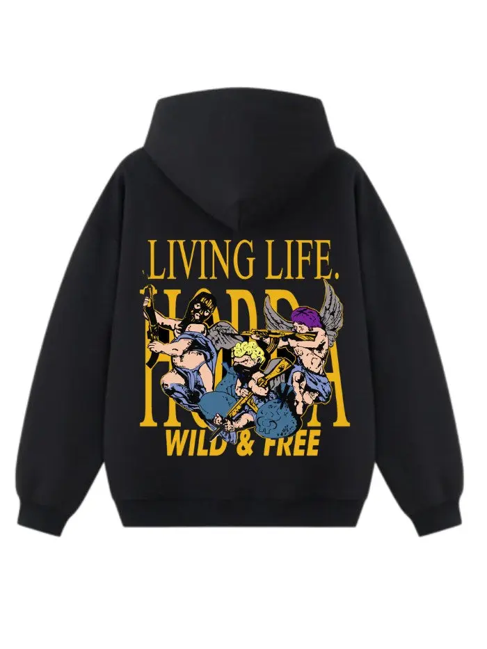 Felpa Wild and Free Boxy Fit 100% Cotone Nera