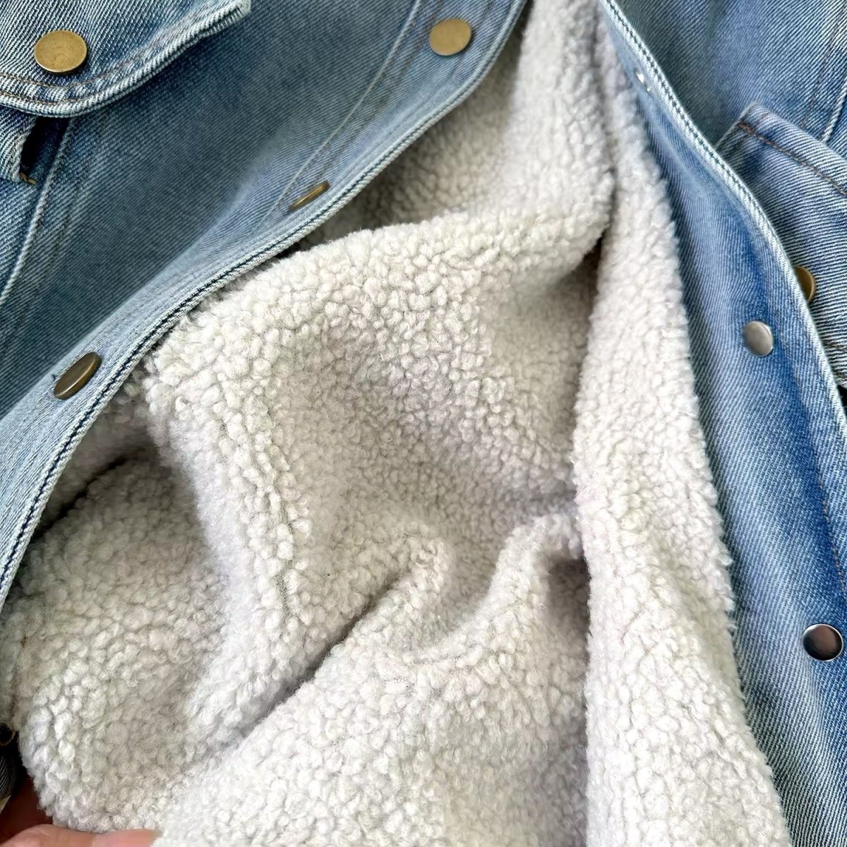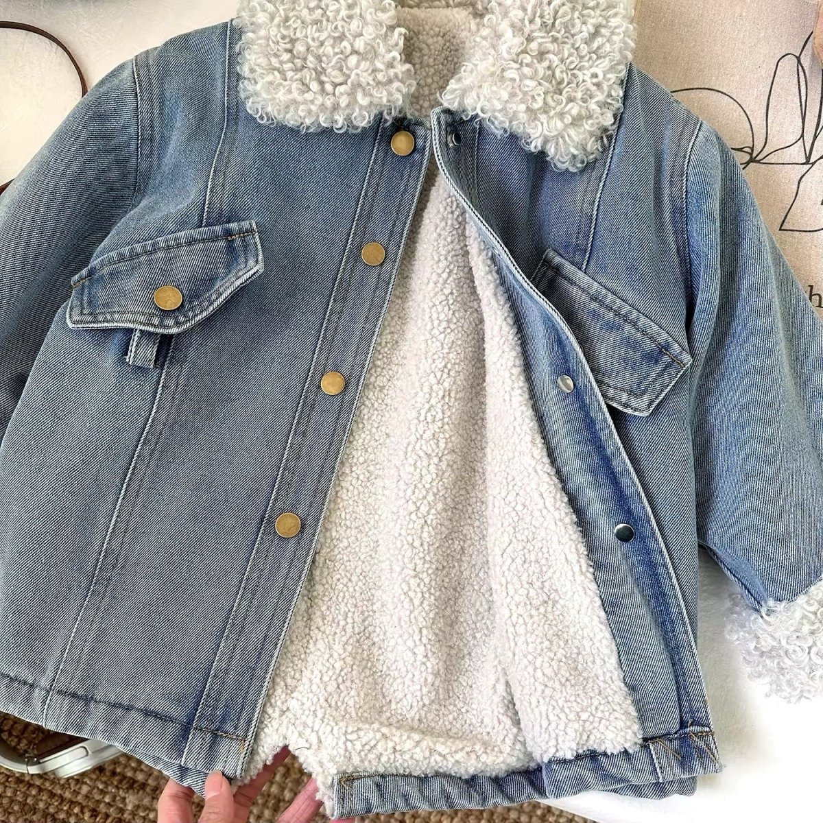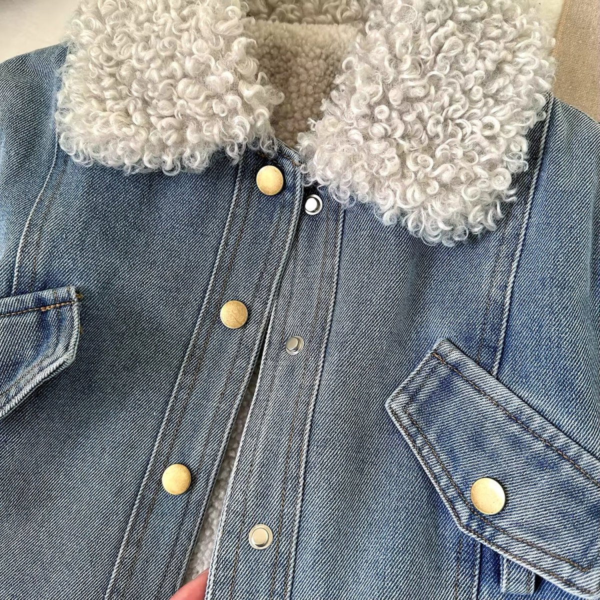 Questa giacca in denim per bambine รจ un capo di abbigliamento alla moda e funzionale, perfetto per le stagioni piรน fredde. Realizzata in tessuto di jeans di alta qualitร , la giacca presenta una fodera in pelliccia sintetica riccia che aggiunge un tocco di calore e stile. Il colletto e i polsini sono rivestiti in pelliccia sintetica, offrendo un look accogliente e alla moda. La giacca รจ dotata di due tasche frontali con bottoni a pressione dorati e una cintura in pelle marrone con fibbia dorata, che permette di regolare la vestibilitร e aggiunge un dettaglio elegante. Questo capo รจ ideale per le bambine che vogliono essere alla moda senza rinunciare al comfort.