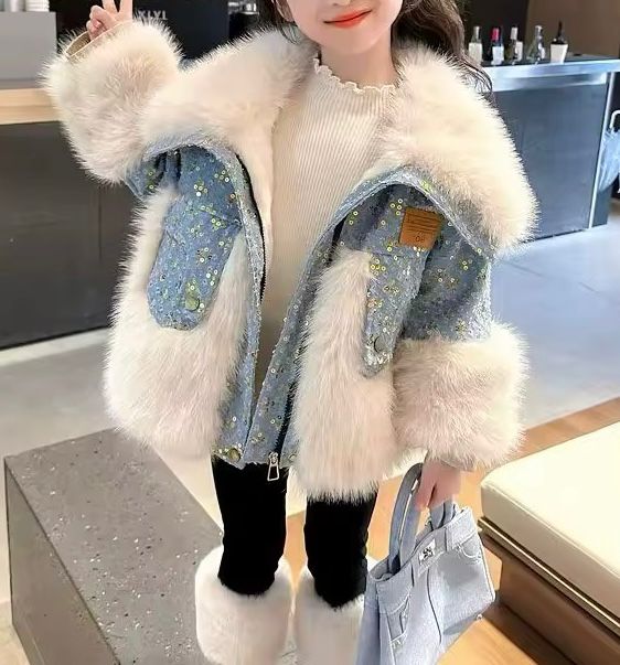 Questa giacca invernale รจ un capo essenziale per il guardaroba di ogni bambina. Progettata per offrire calore e stile durante i mesi piรน freddi, questa giacca combina materiali di alta qualitร con dettagli alla moda. Internamente foderata con pelliccia sintetica soffice e calda che si estende fino al collo, polsini e bordo inferiore, garantendo massimo comfort