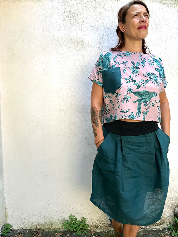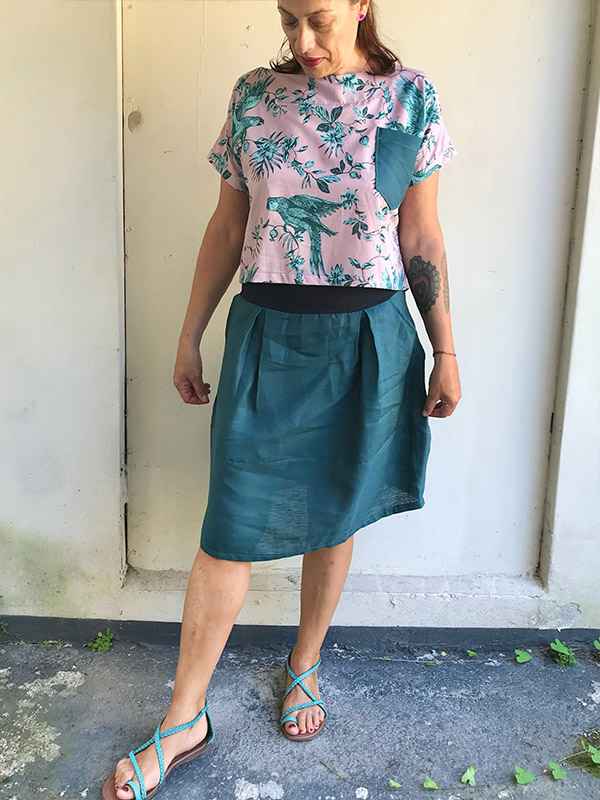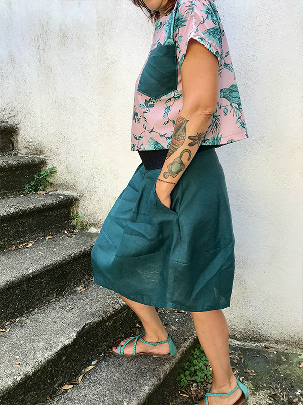 Gonna in lino, in vita ha una comoda fascia in tessuto elastico, sottolinea il punto vita, lunga appena sotto il ginocchio, la sua forma a palloncino viene arricchita da tessuti misti, indossata con i tacchi รจ alquanto chic! Il tessuto elasticizzato lo rende confortevole e ideale per tutte le stagioni, abbinala o con la maglia Kimono, la maglia Rondine o la maglia Cubetto. Prodotto esente da ulteriori sconti con coupon Guida alla taglie La taglia S veste: Fianchi da 96 a 100 cm Lunghezza gonna 50 cm La taglia M veste: Fianchi da 100 a 108 cm Lunghezza gonna 52…