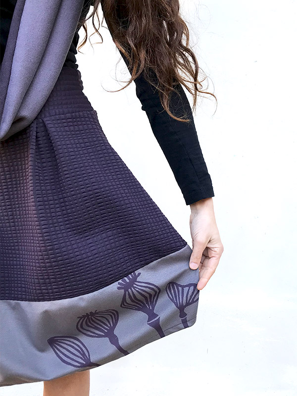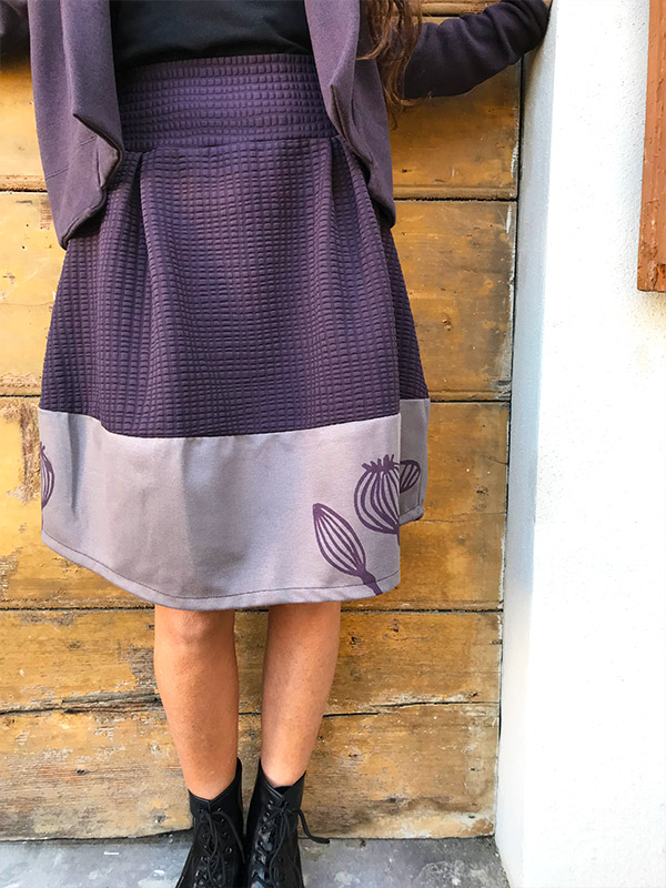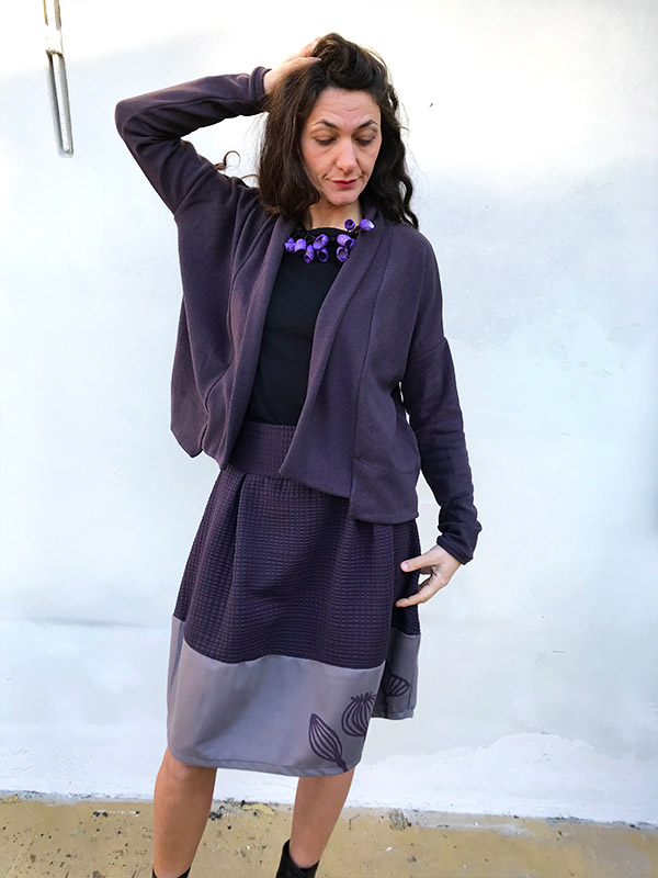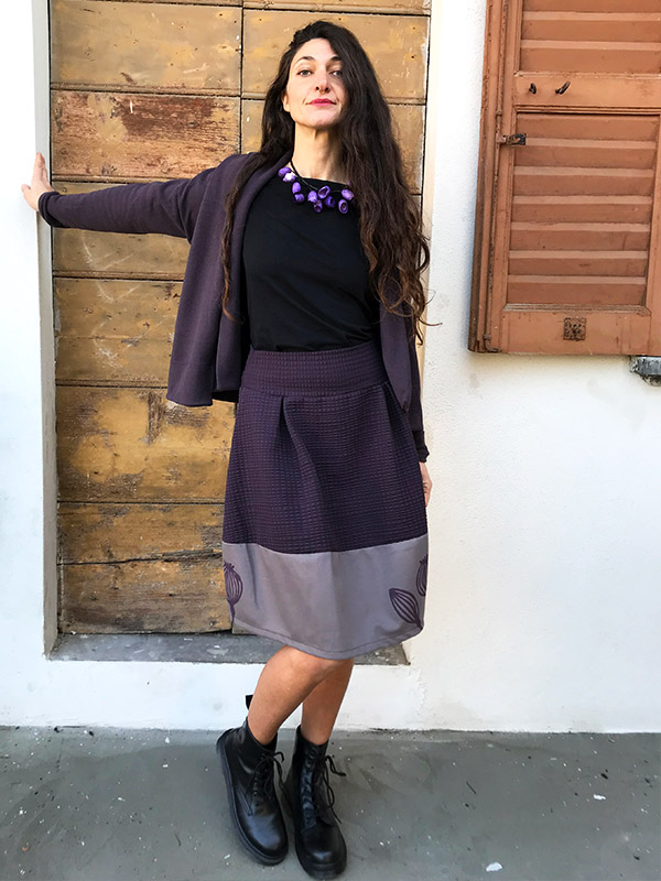 Gonna in tessuto โฆ in vita ha una comoda fascia in tessuto elastico, sottolinea il punto vita, lunga appena sotto il ginocchio, la sua forma a palloncino viene arricchita da tessuti misti e stampe realizzate a mano, con tecnica di linoleografia, indossata con i tacchi รจ alquanto chic! Il tessuto elasticizzato lo rende confortevole e ideale per la stagione autunno/inverno, abbinala o con la maglia Kimono, la maglia Rondine o la maglia Cubetto. Guida alla taglie La taglia S veste: Fianchi da 96 a 100 cm Lunghezza gonna 50 cm La taglia M veste: Fianchi da 100 a 108 cm…