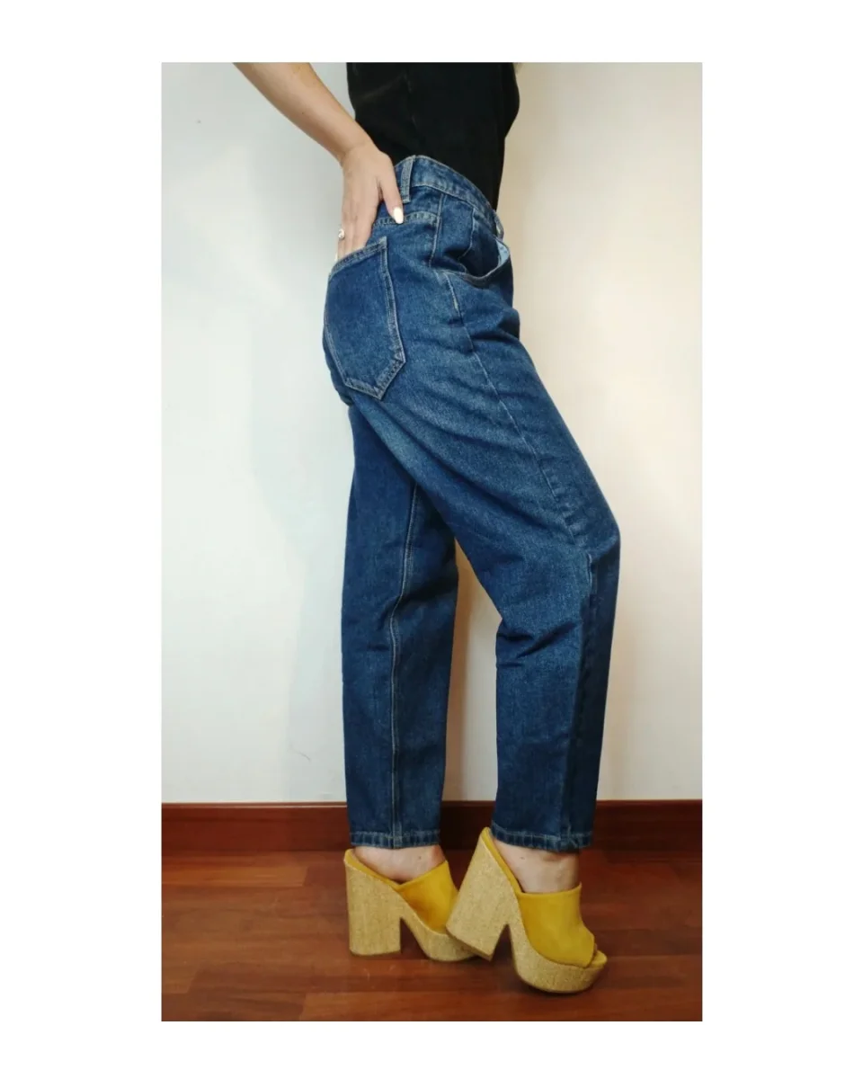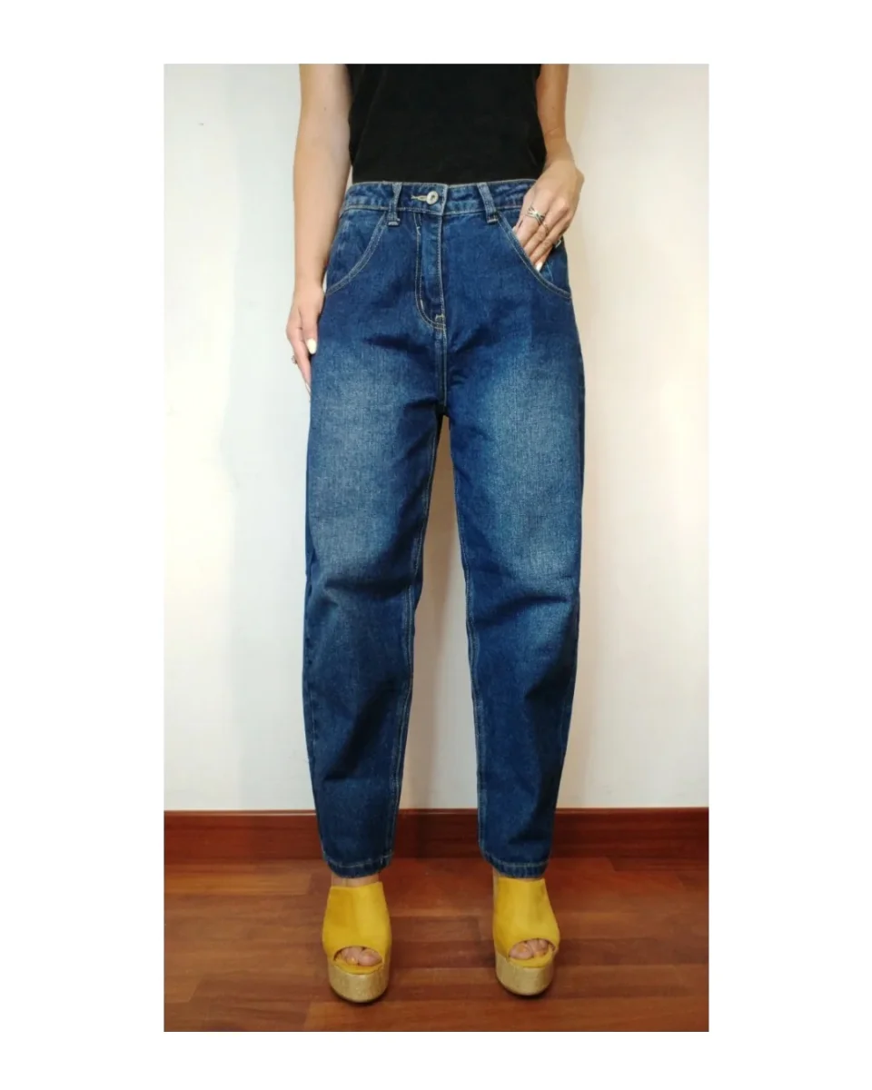 Jeans modello baloon regular, lavaggio scuro con tessuto fermo e poco elasticizzato, 5 tasche, bottone e zip..comodo e stiloso!