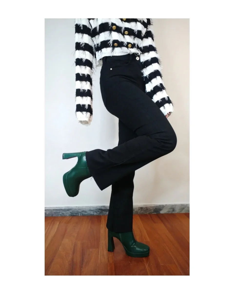 Jeans mini trombetta, un mix tra gaucho e flare, modello push up vita alta, vestibilitร molto aderente, chiusura 5 tasche, bottone e zip!