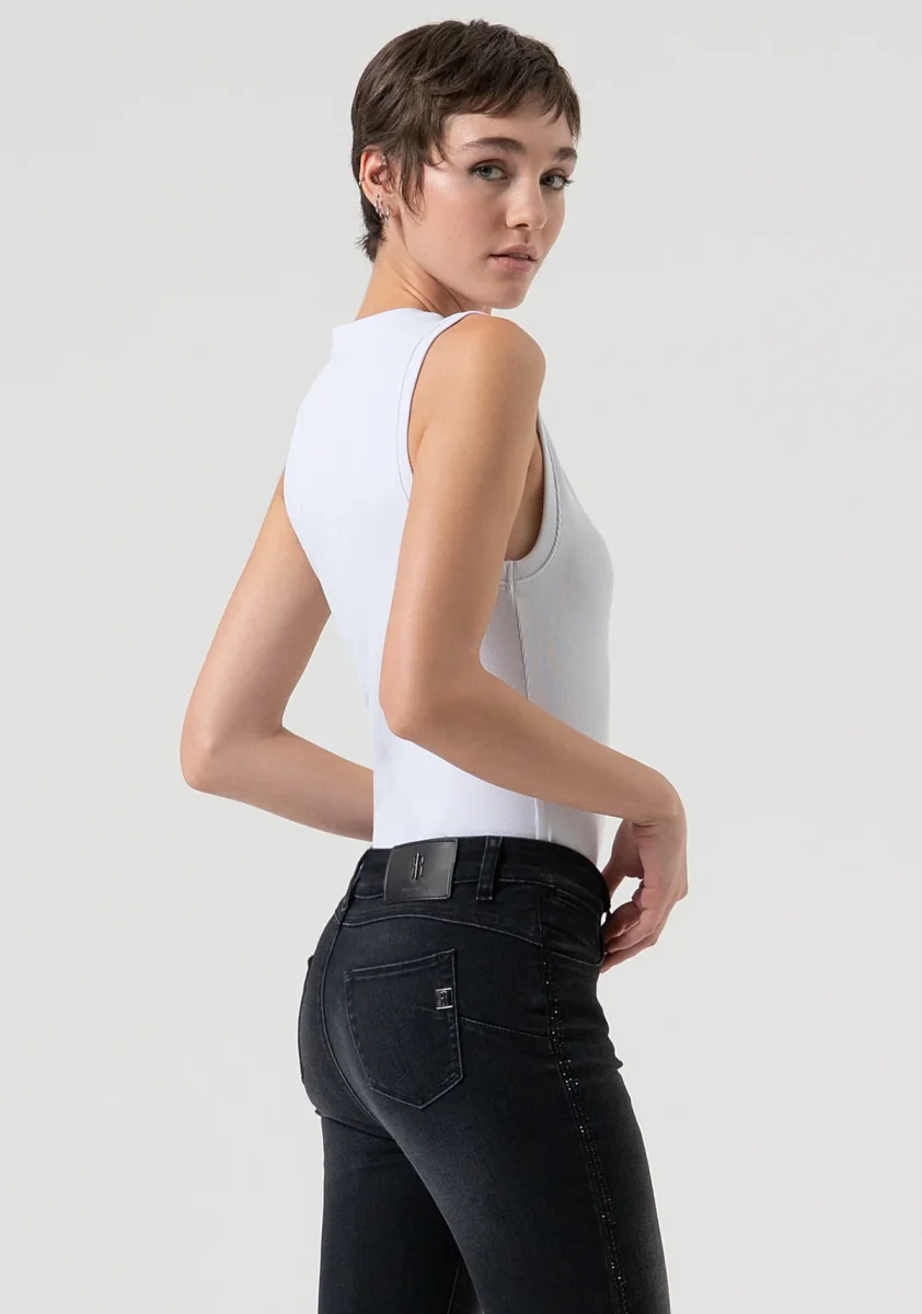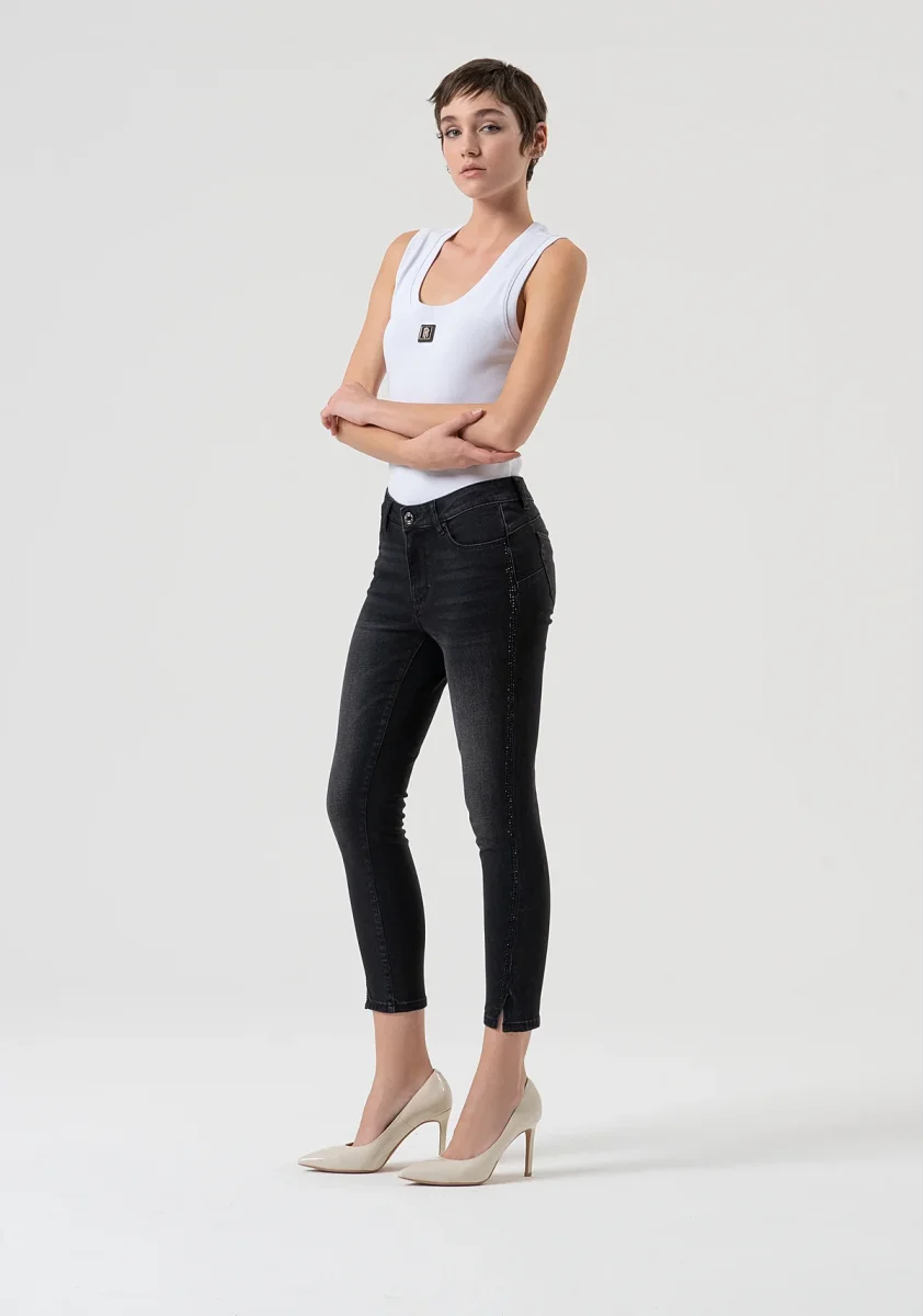 Jeans slim cropped push up in denim nero