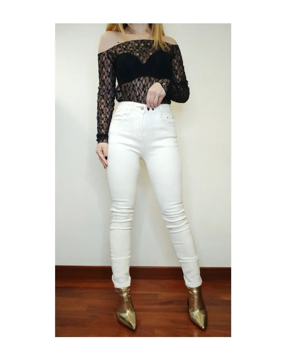 Jeans skinny modello super push up, vita media alta, elasticizzato, 5 tasche, bottone e zip, nuance bianco (no trasparente). Vestibilitร regular. โช๏ธTaglia XS S XL Codice: SA9801-3 โจ Il costo di spedizione รจ di โฌ5 in tutta Italia, comprese le Isole Maggiori. โจ Spedizione gratuita con ordini superiori a โฌ70.
