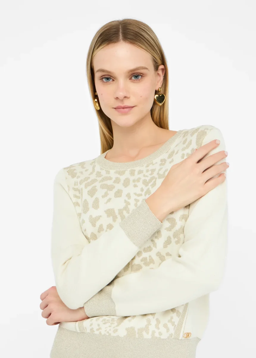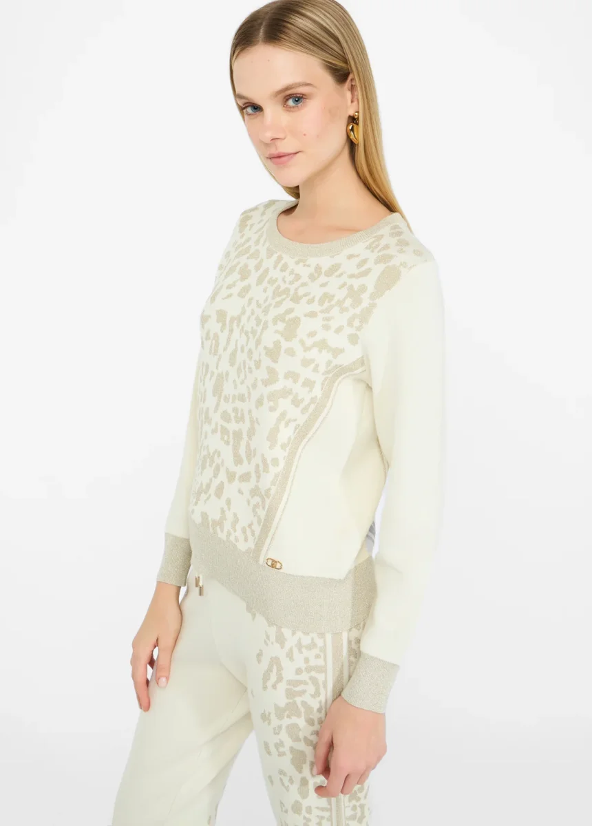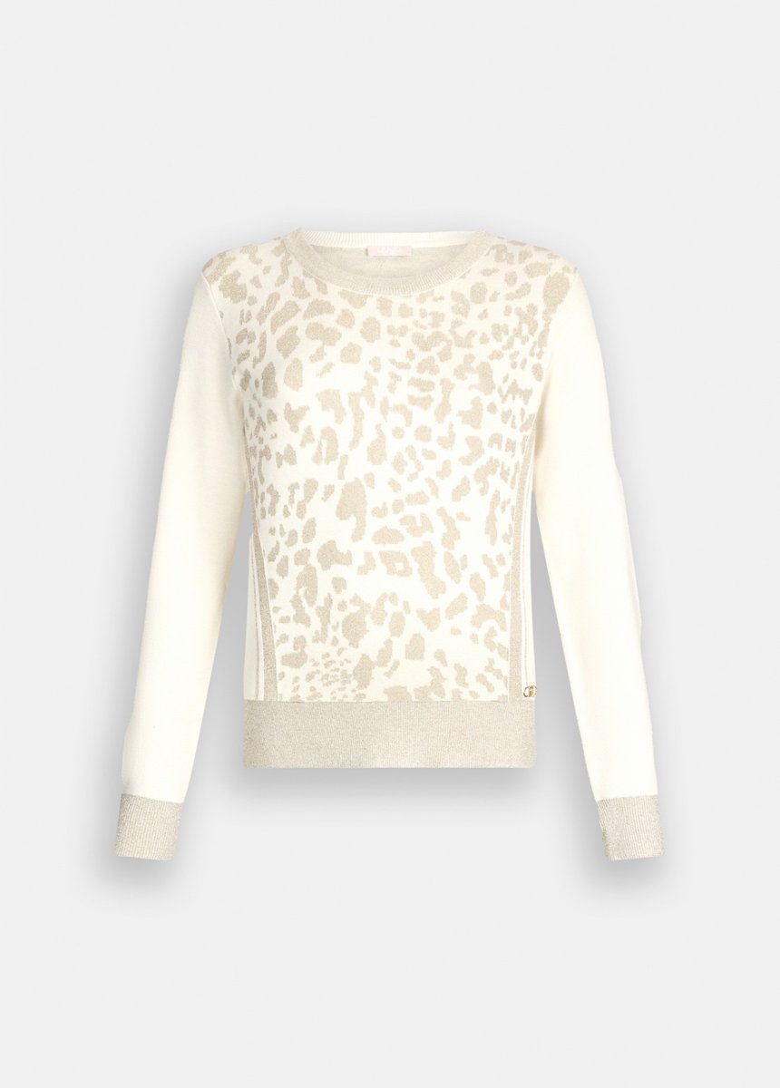 Maglia ecosostenibile in misto viscosa e lurexยฎ, caratterizzata da un raffinato motivo animalier jacquard. Il design presenta scollo rotondo, maniche lunghe e bordi a costine che assicurano una vestibilitร confortevole. Impreziosita dal logo in metallo al fondo, questa maglia unisce stile e sostenibilitร grazie alla linea “Liu Jo Better”. Perfetta per aggiungere un tocco luminoso e sofisticato ai tuoi outfit quotidiani. Colore: Bianco Composizione: 64% Viscosa, 16% Poliammide, 13% Poliestere, 7% Poliestere metallizzato Vestibilitร : La modella รจ alta 180 cm e indossa la taglia S Istruzioni di lavaggio: Lavare a mano, a rovescio e con colori similari. Non candeggiare, non…
