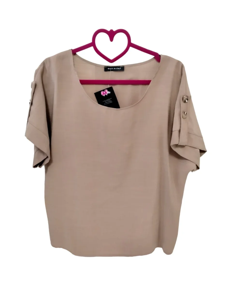 Maglia basic dal taglio classico con scollo rotondo, smanicata con bottoni laterali cuciti, serata al tatto in 88% viscosa, consistente e morbida nella vestibilitร !
