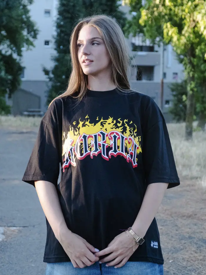 Maglietta boxy fit nera 100% Cotone Horda Flame