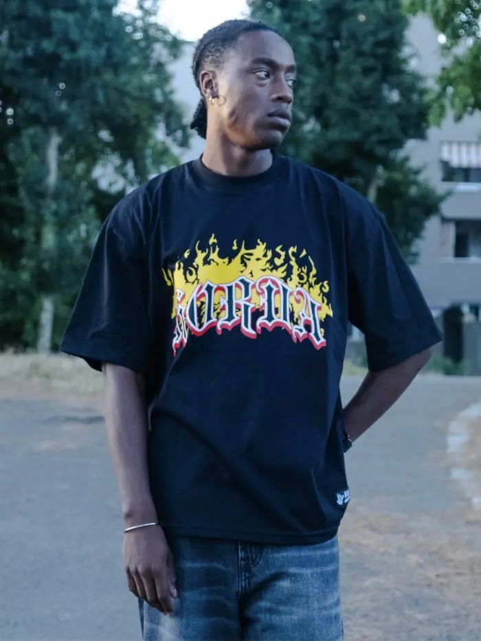 La Maglietta Horda Flame รจ il pezzo statement perfetto per outfit con energia. Abbinala a denim per un look casual-energico, a cargo per vibe urban-intenso, o layerala sotto le nostre felpe boxy fit per outfit stratificati con passione. Completa con i maglioni per la stagione fredda, o esplora l’intera collezione T-shirt per creare il tuo stile energico e unico.