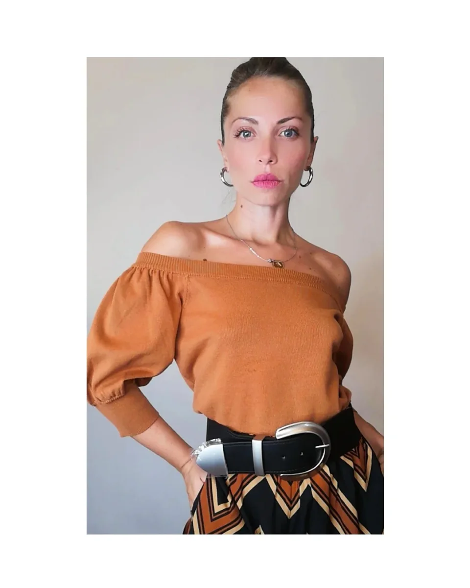 Maglioncino particolare e sfizioso, manica 3/4 con scollo a barchetta, lunghezza regular con doppio elastico, tinta unita, caramello! ▪️Taglia Unica ✨ Il costo di spedizione è di €5 in tutta Italia, comprese le Isole Maggiori. ✨ Spedizione gratuita con ordini superiori a €70.