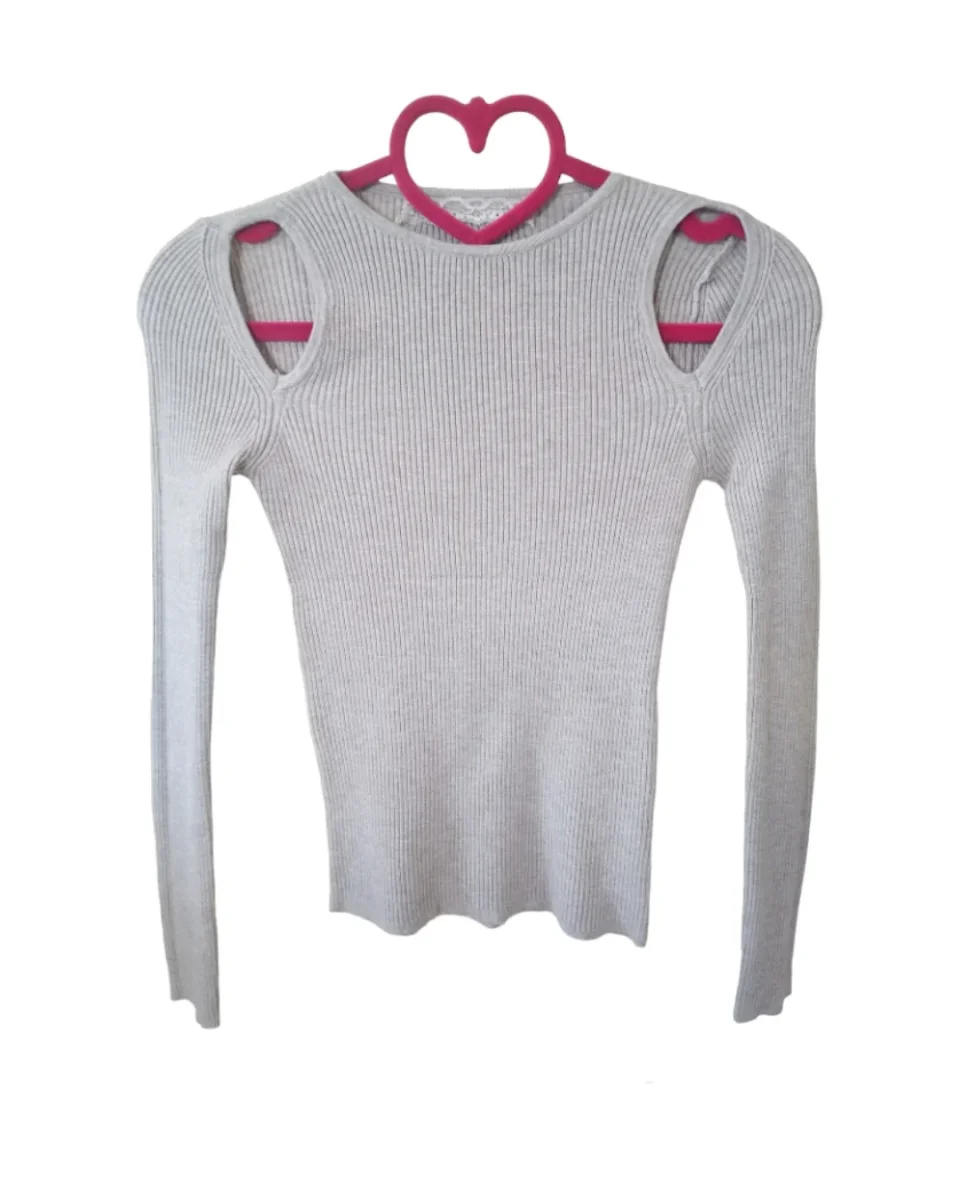 Maglioncino dalla forma dritta e pulita, texture e vestibilitaโ consistente in 53% viscosa, elasticizzato a costina fina, lunghezza regular con la particolaritร del cut out, basic con un tocco di femminilitร !