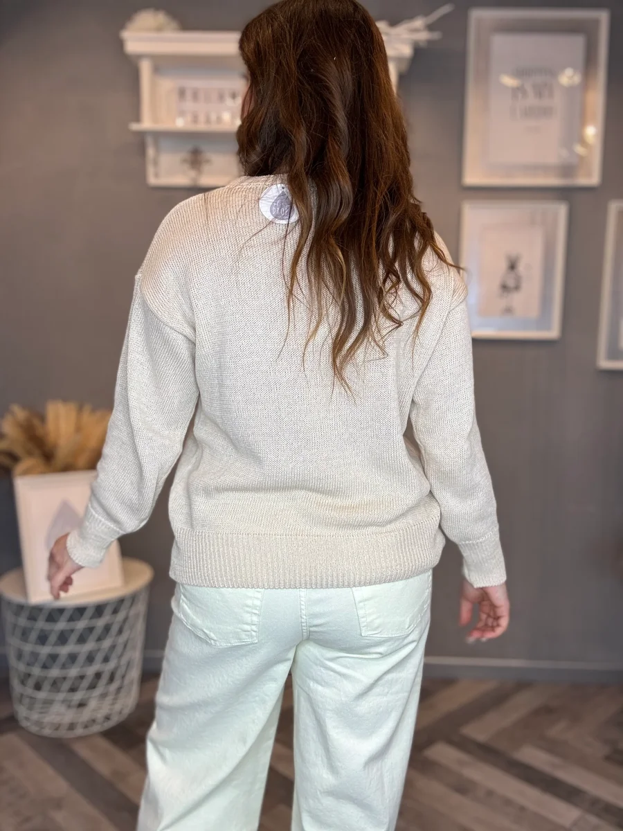 Maglioncino leggero e super versatile, realizzato in 100% cotone, perfetto per la mezza stagione e le giornate più fresche d’estate. Il colore beige illumina l’outfit e dona subito un tocco fresco e vivace.