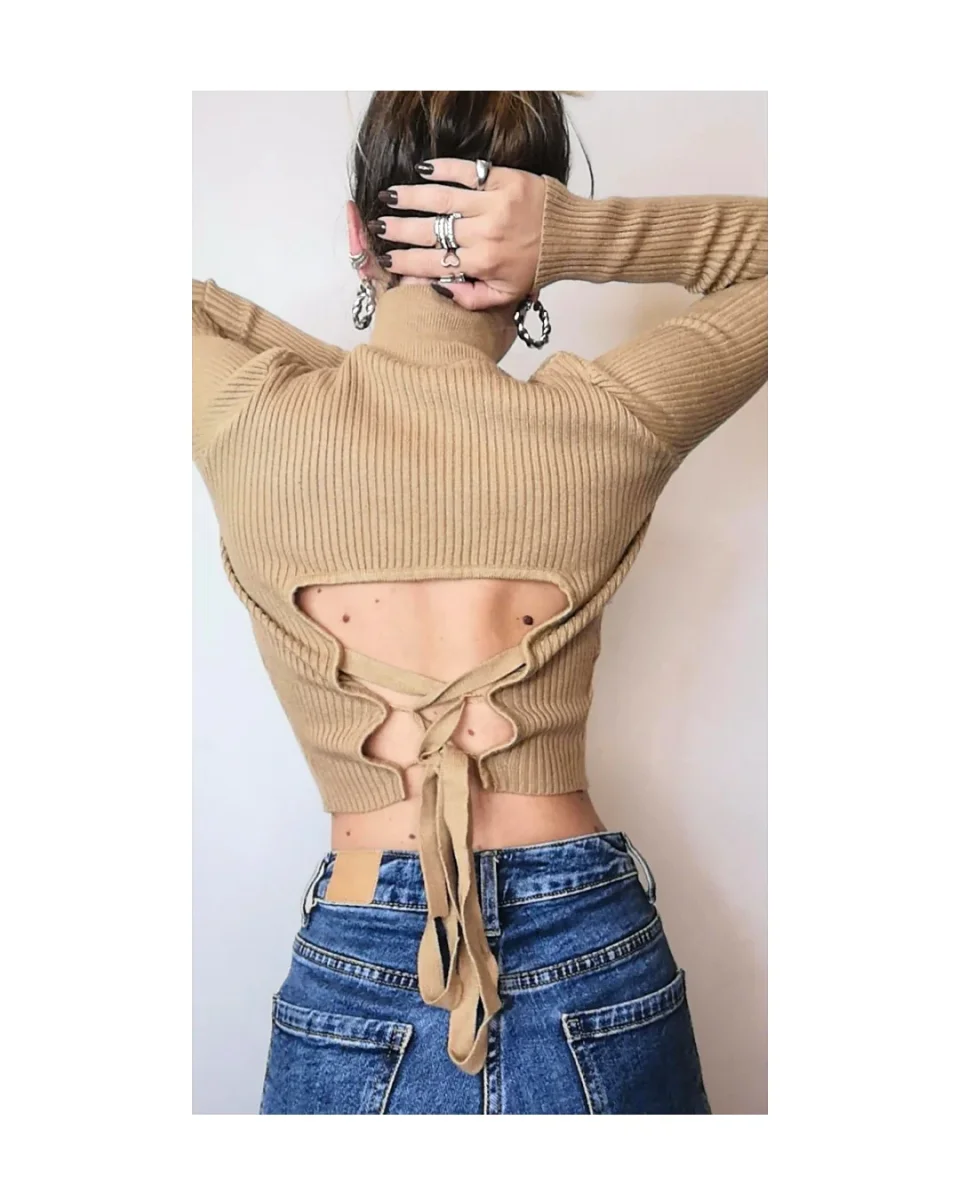 Maglione open toe sulla schiena: CARAMELLO!