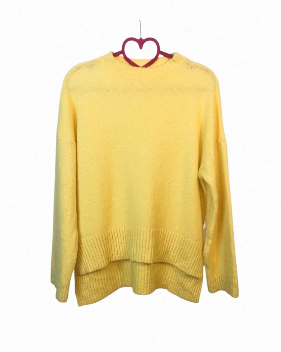 Maglione svasato e girocollo, morbido nella vestibilità, tinta unita giallo, misto acrilico, poliestere e lana. ▪️Taglia Unica
