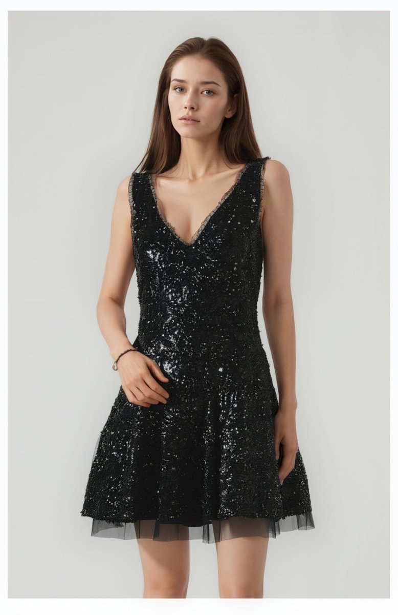Brilla ad ogni passo con questo elegante mini abito nero firmato Imperial, perfetto per occasioni speciali, feste e serate glamour. Realizzato in tessuto elasticizzato (95% poliestere, 5% elastan), offre una vestibilitร confortevole e valorizzante. Il design senza maniche, lo scollo a V e la silhouette svasata rendono questo abito un capo versatile e raffinato. Interamente ricoperto di paillettes scintillanti, cattura la luce con ogni movimento. Colore: Nero Composizione: 95% Poliestere, 5% Elastan Perfetto per eventi serali, cocktail party o Capodanno!