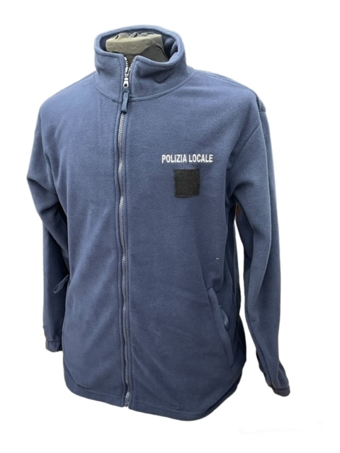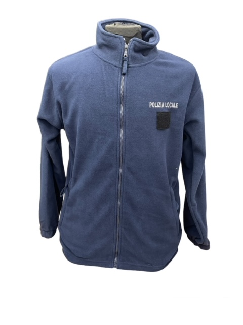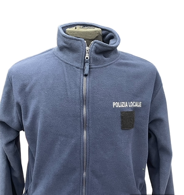 Pile full zip con ricamo lato cuore Polizia Locale, velcro per applicazione grado.