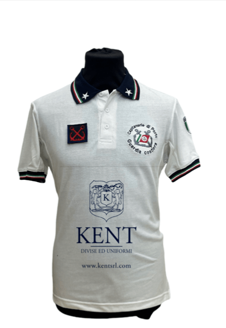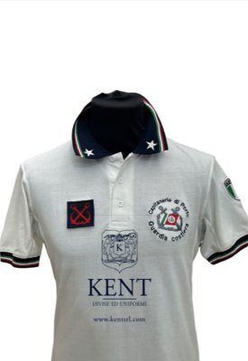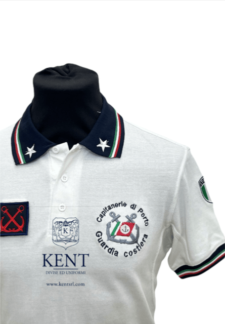 Polo in cotone Guardia Costiera. Con ricamo e velcro per applicazione grado. Scudetto Italia al braccio.