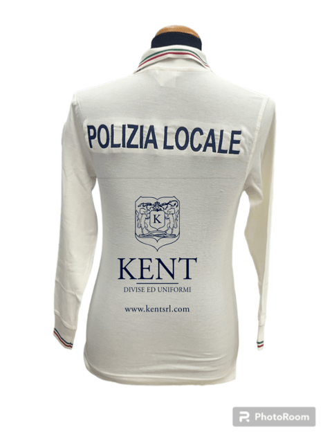 POLO BIANCA TRICOLORE COTONE MANICA LUNGA POLIZIA LOCALE