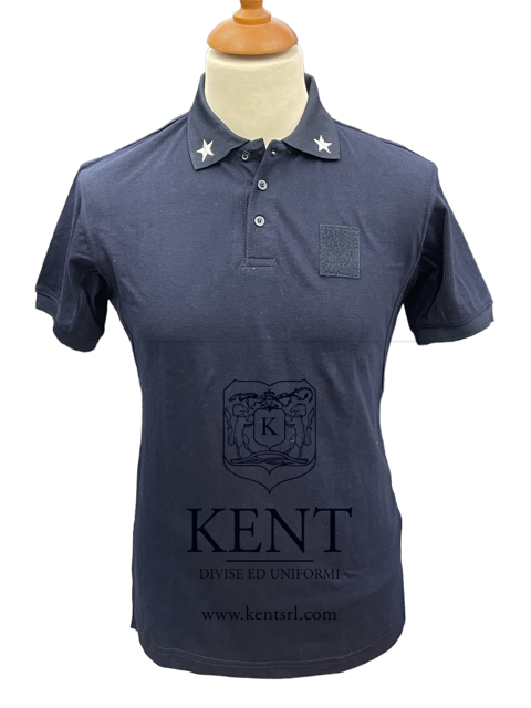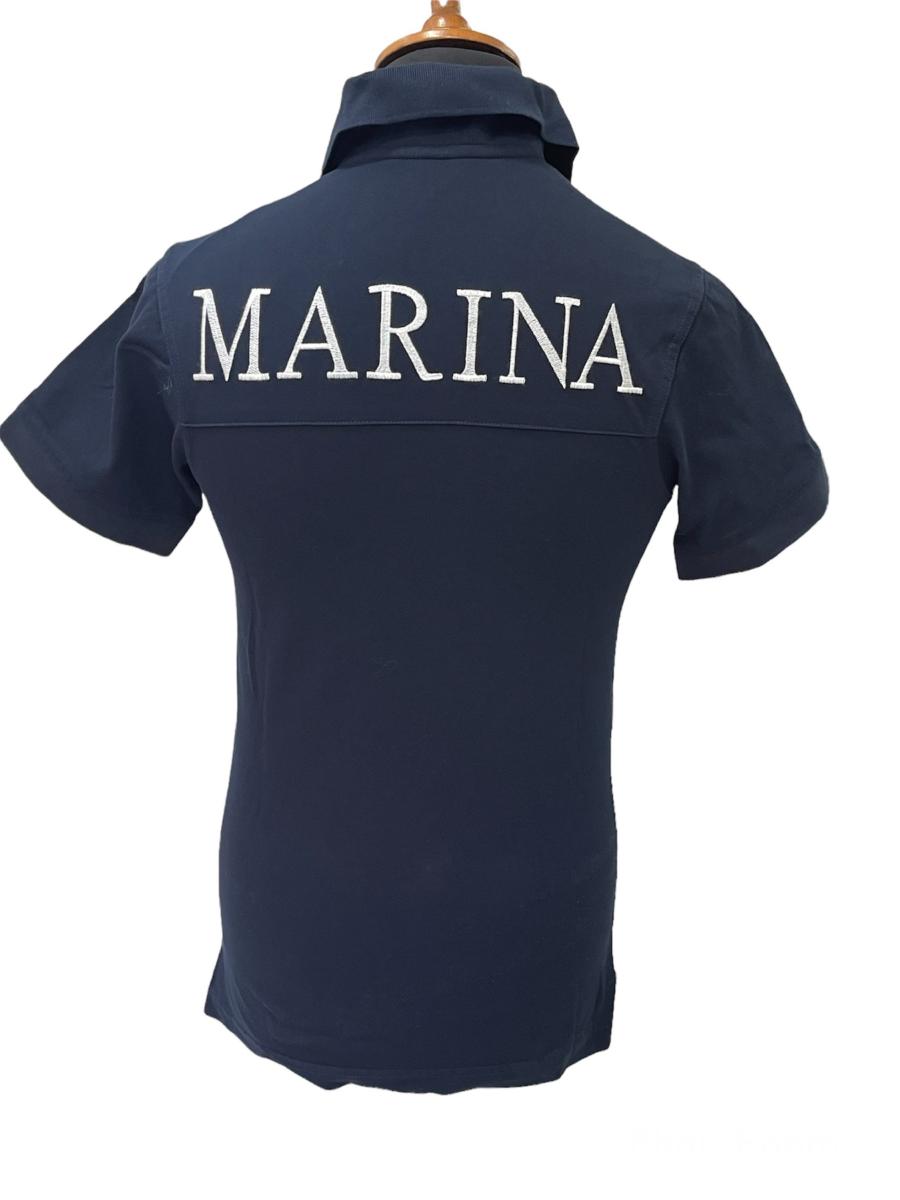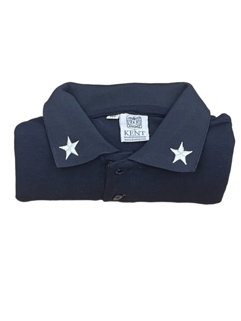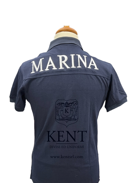 Polo in puro cotone piquet, ricamo posteriore Marina e velcro al petto per applicazione del grado. Stellette ricamate al collo.
