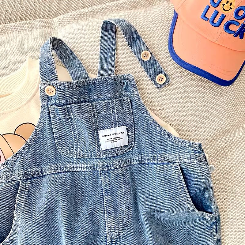 Questa adorabile salopette in denim per bambini รจ perfetta per un look casual e alla moda. Realizzata in tessuto di jeans di alta qualitร , presenta due spalline regolabili con bottoni in legno, una tasca frontale con etichetta decorativa e due tasche laterali per maggiore praticitร .Ideale per ogni occasione, questa salopette combina comfort e tendenza, rendendola un capo essenziale nel guardaroba di ogni bambino.