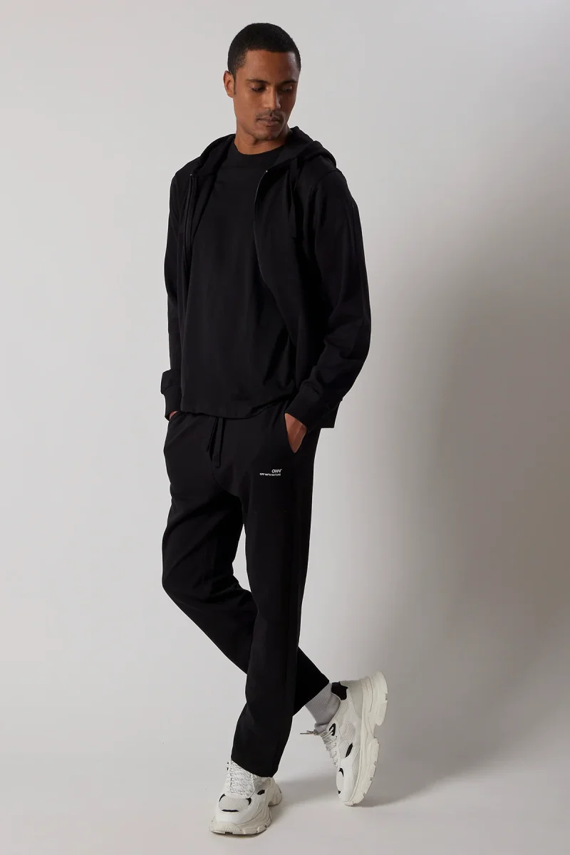 Set composto da felpa con cappuccio e zip, tasche laterali, fondo e polsini in costina, e joggers.