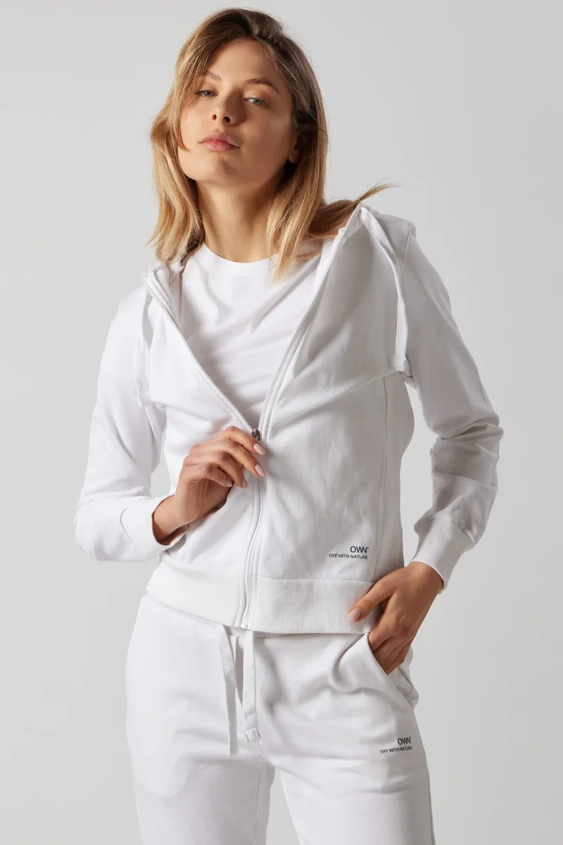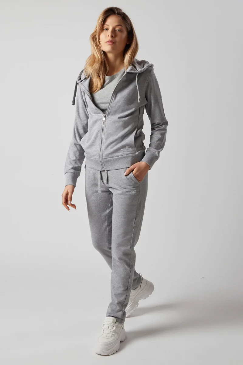 Set composto da felpa con cappuccio e zip, e joggers con tasche laterali.Realizzato in cotone organico certificato di alta qualitร .La variante Grigio Chiaro Melange include una percentuale di viscosa nella composizione.