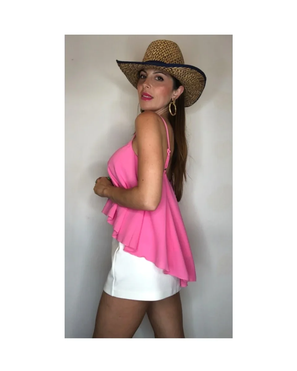 Non รจ un vero e proprio top, il voilant copre tranquillamente il busto, bretellina regolabile, tinta uni scollo a V, la morbidezza e la fluttuabilita’ del doppio velo lo rende veramente CHIC!