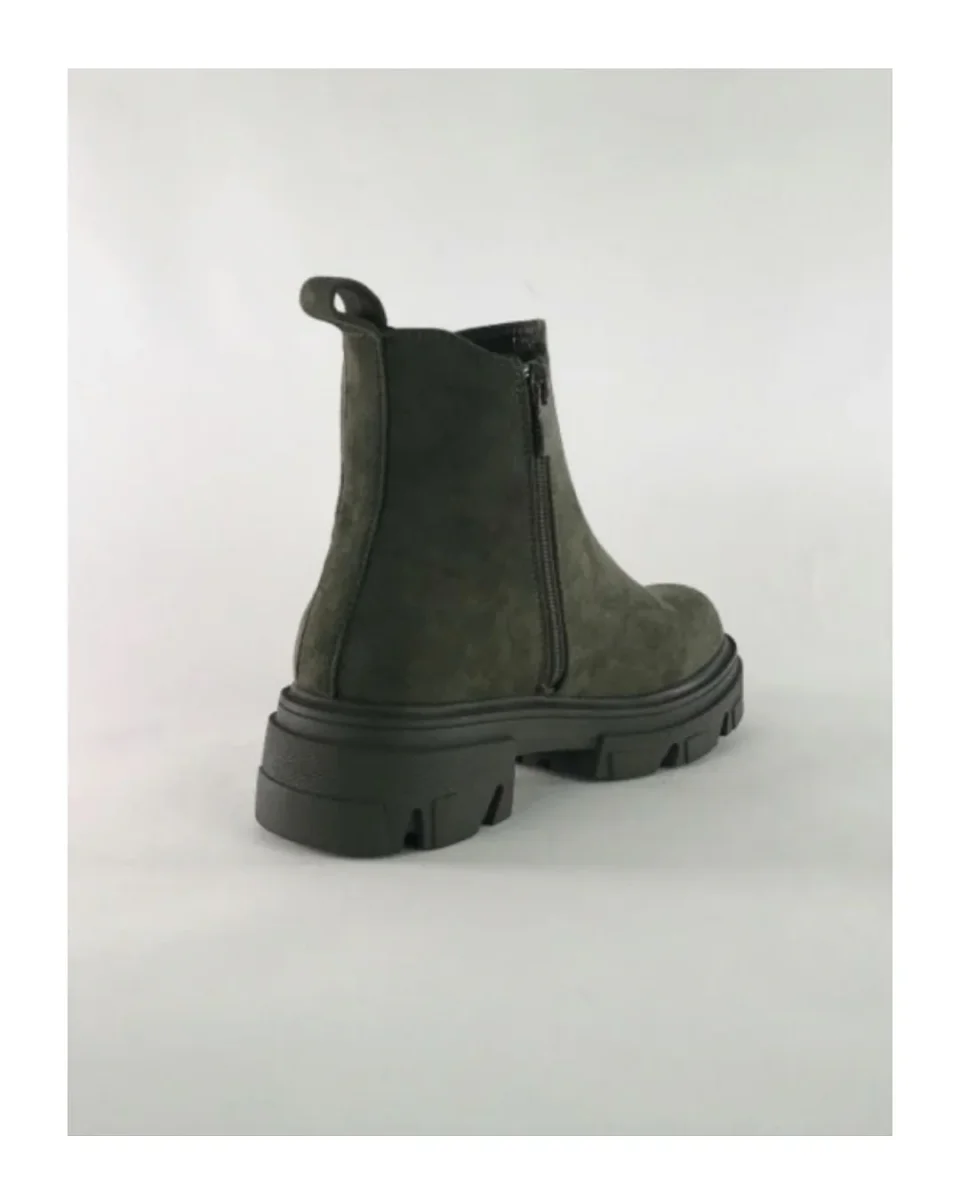 “Beatles” รจ l’iconico Boots ispirato alla moda anni ’60, aderente alla caviglia con punta stondata, elastico e zip laterale. Consistente e compatto in tomaia scamosciata e comodo platform. La particolaritร ??? La nuance di tendenza Verde Militare, il nuovo Black, trasversale e versatile! โช๏ธCalzata Regolare