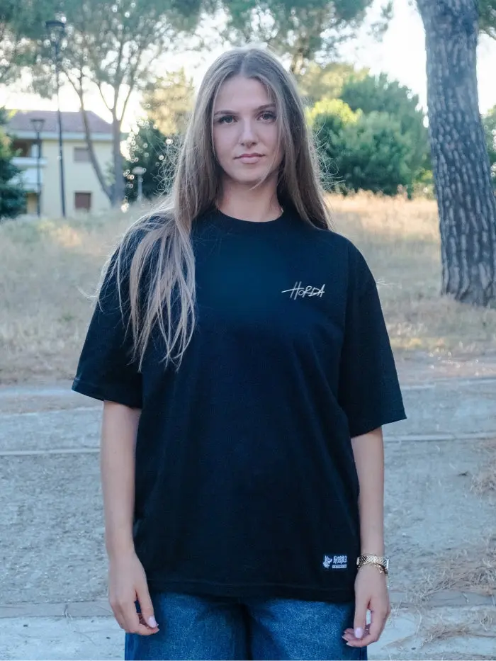 Maglietta boxy fit nera 100% Cotone Horda Flame