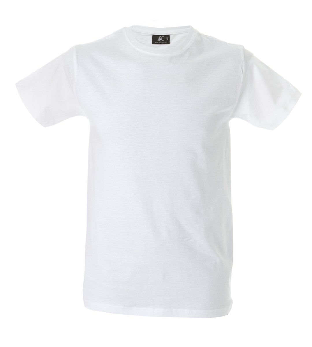 T-Shirt in puro cotone, colore bianco. Manica corta. – Girocollo – Collo basso h cm 1.2 Peso: 150 gr. Ideale per la stampa
