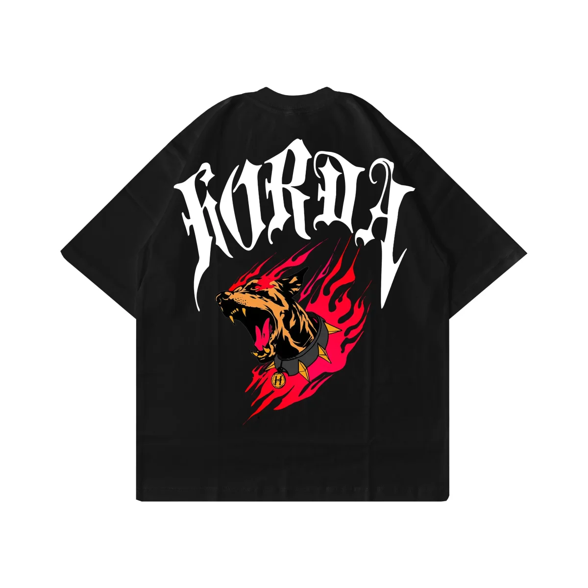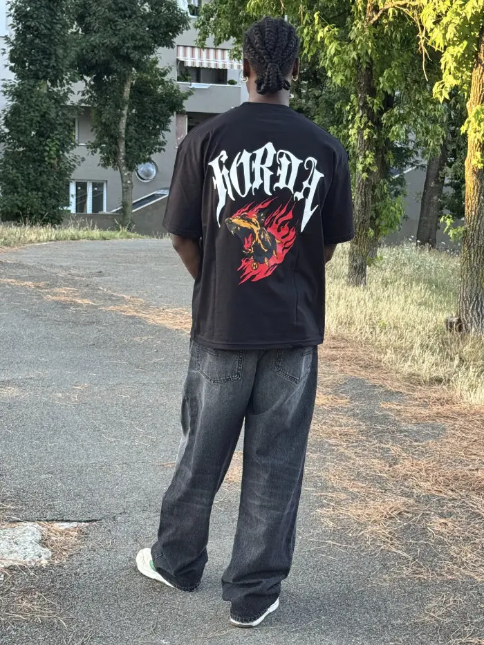 Maglietta boxy fit nera 100% Cotone Horda Flame