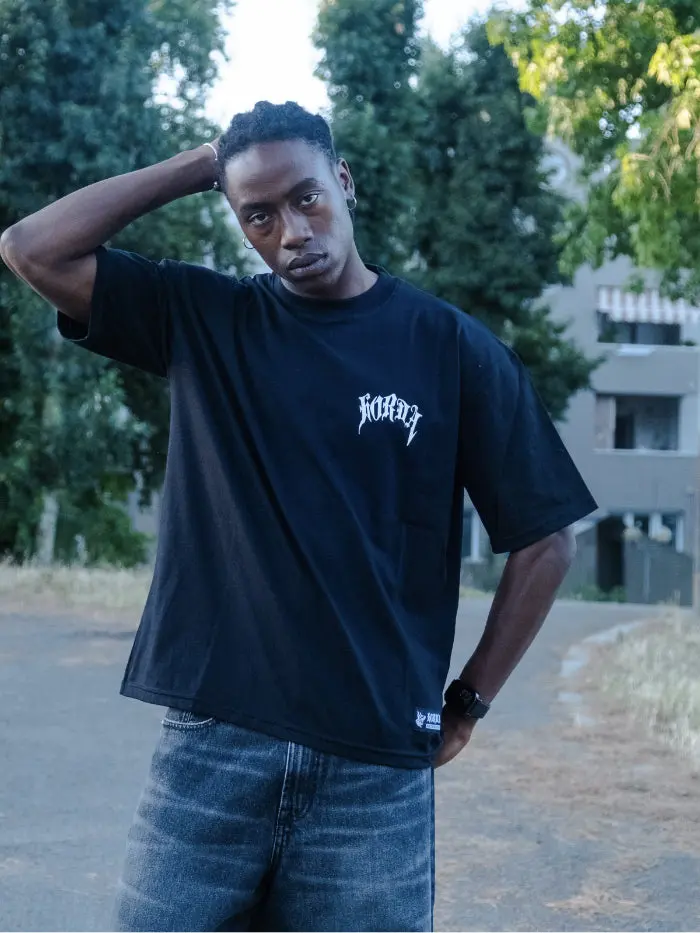 La T-shirt Gotic Flame รจ il centerpiece perfetto per outfit dark e bold. Abbinala a denim nero per un look monocromatico potente, a cargo militari per vibe urban-gothic, o layerala sotto le nostre felpe boxy fit nere per outfit stratificati con attitudine. Completa con i maglioni scuri per la stagione fredda, o esplora l’intera collezione T-shirt per creare il tuo stile unico e riconoscibile.