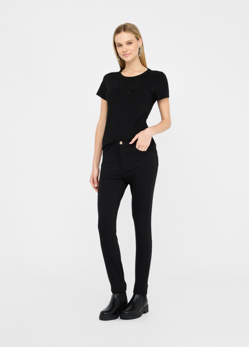 T-shirt donna ecosostenibile realizzata in jersey di cotone stretch, morbida e confortevole. Caratterizzata dal logo Liu Jo impreziosito da strass sul davanti, presenta scollo rotondo e maniche corte per un look casual ma raffinato. Un capo versatile e moderno della linea Liu Jo Better, ideale per completare outfit quotidiani con un tocco luminoso. La modella รจ alta 180 cm e indossa la taglia S. Composizione: 95% Cotone, 5% Elastan Cura del capo: Lavare delicatamente max 30ยฐC, a rovescio e con colori similari Non trattare con cloro, non lavare a secco, non asciugare in asciugatrice Asciugare in piano Stirare max 110ยฐC,…