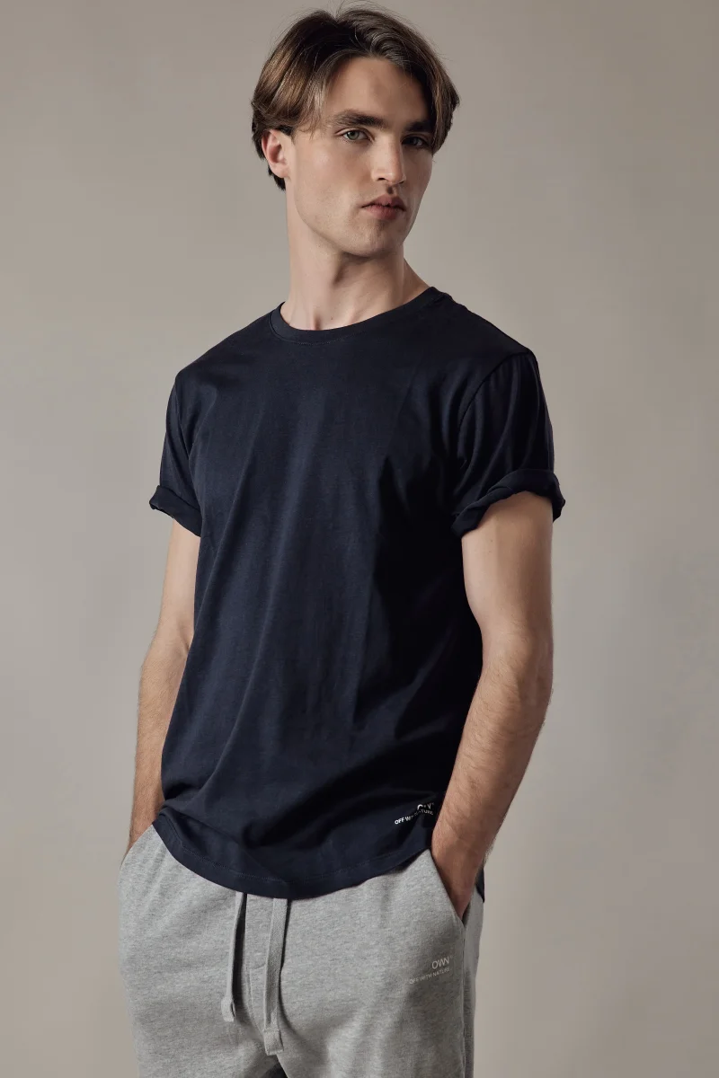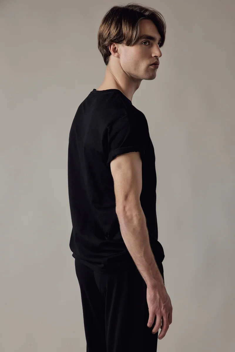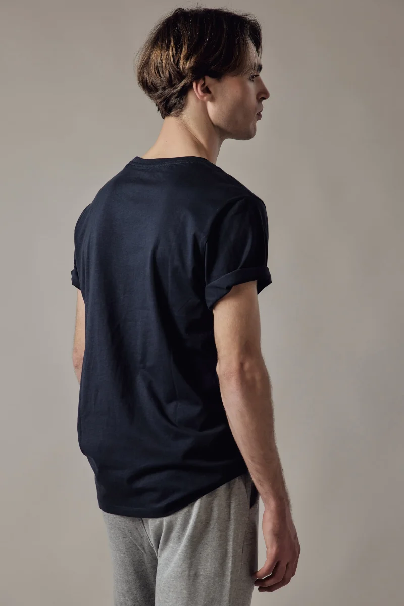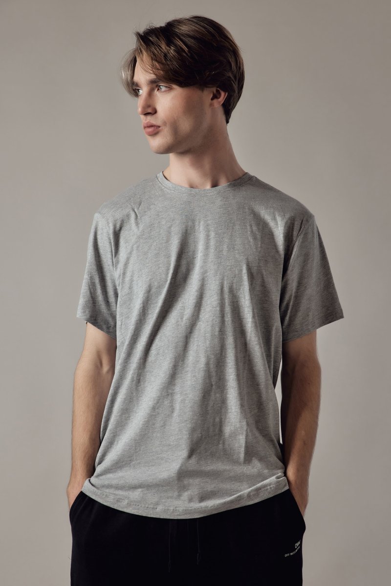 T-shirt a manica corta con collo in costina.Realizzata in cotone organico certificato di alta qualitร .La variante Grigio Chiaro Melange include una percentuale di viscosa nella composizione.